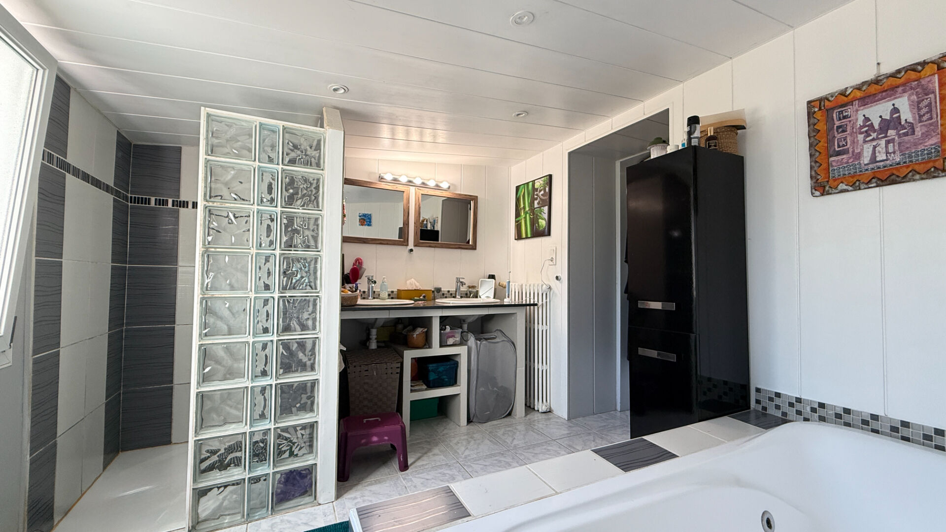 Côté nuit, la maison propose quatre belles chambres, idéales pour accueillir une famille ou recevoir. Une spacieuse salle de bains familiale complète l'ensemble, avec à la fois une baignoire et une douche pour répondre à tous les besoins.