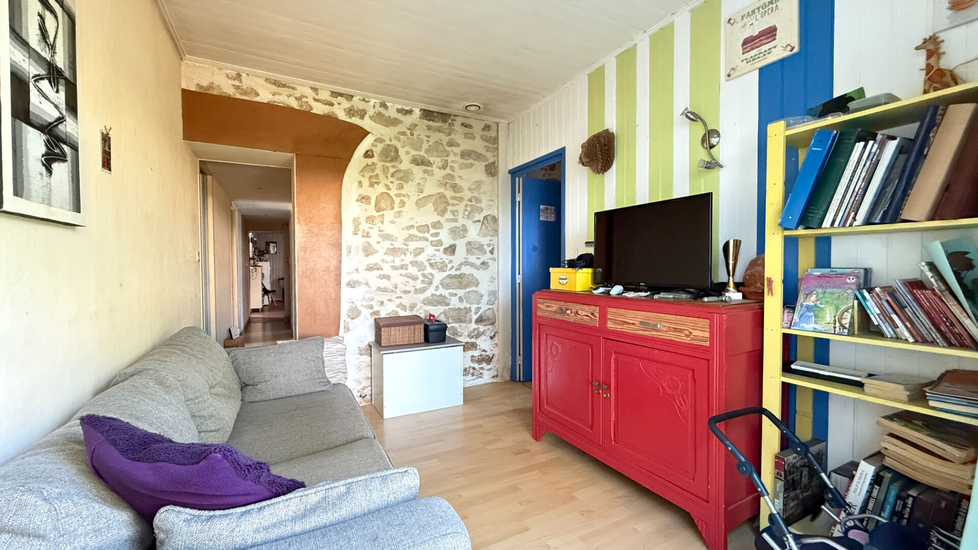 Dès l'entrée, vous découvrez un agréable salon séjour baigné de lumière, offrant un espace de vie convivial et chaleureux. La cuisine, entièrement aménagée et équipée, allie fonctionnalité et confort pour le quotidien.