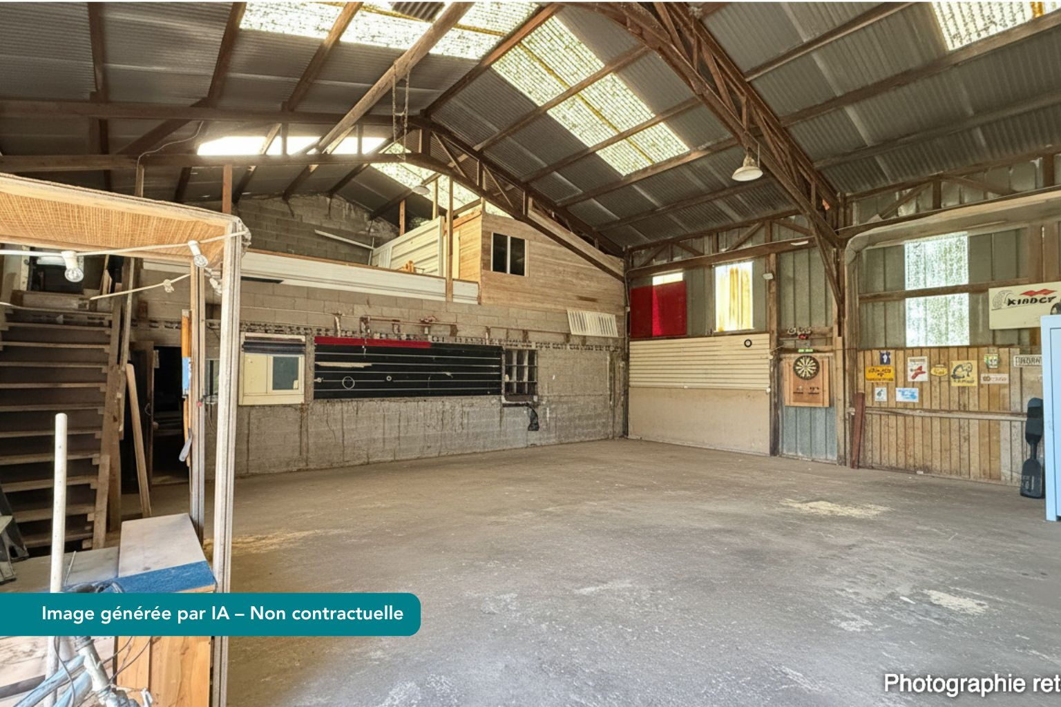Le véritable atout de ce bien réside dans sa grande dépendance d'environ 230 m², comprenant une partie grange, une mezzanine ainsi qu'un garage. Un volume rare offrant de nombreuses possibilités d'usage selon vos projets.