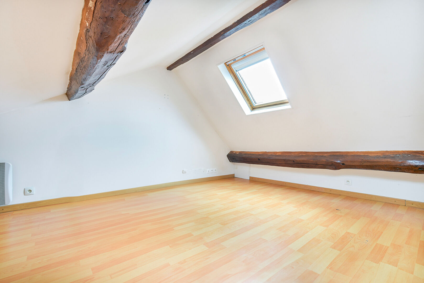 A l'étage, la visite se poursuivra avec un palier desservant deux chambres avec le charme des poutres apparentes ainsi qu'une salle d'eau avec WC.