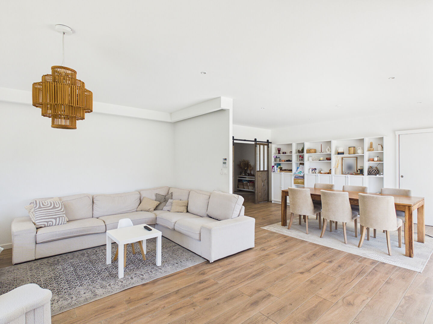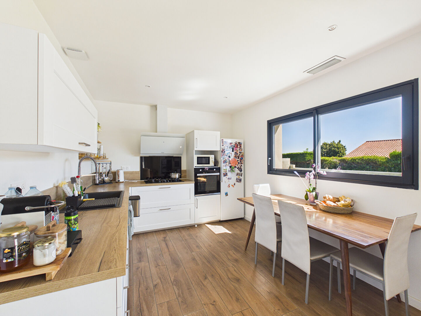 Très lumineuse, elle séduit par ses beaux volumes et sa pièce de vie spacieuse comprenant un vaste salon-séjour ouvert sur l'extérieur. La cuisine, entièrement aménagée et équipée, dispose également d'une arrière-cuisine pratique au quotidien.