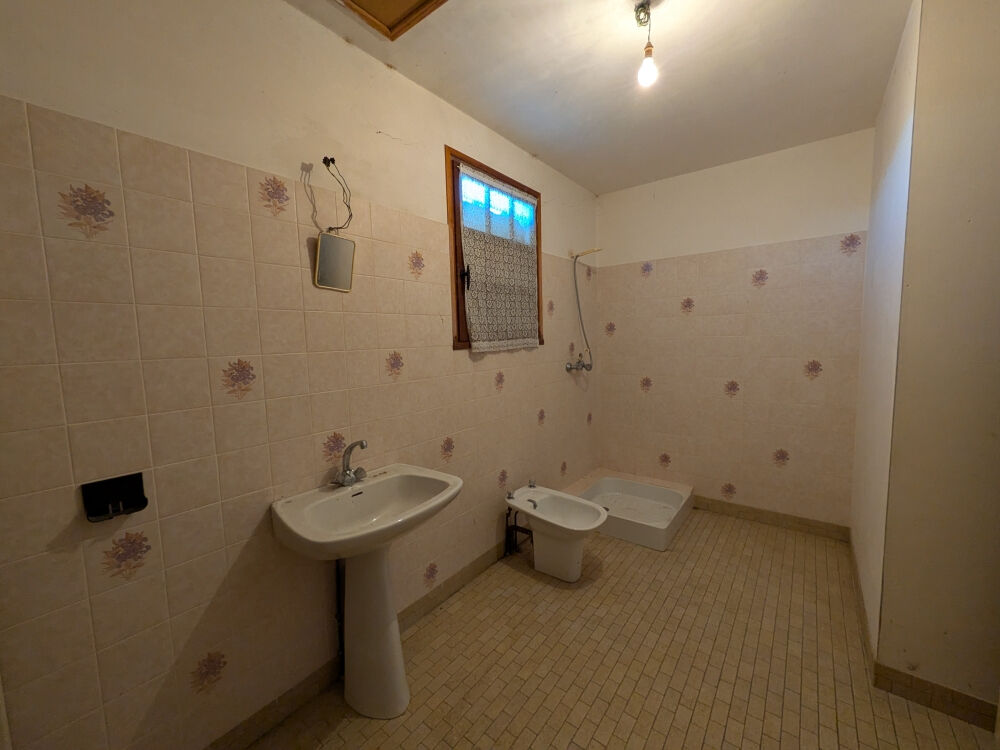 A l'étage un palier ouvre sur deux chambres, salle d'eau et toilettes puis sur une partie grenier encore aménageable.