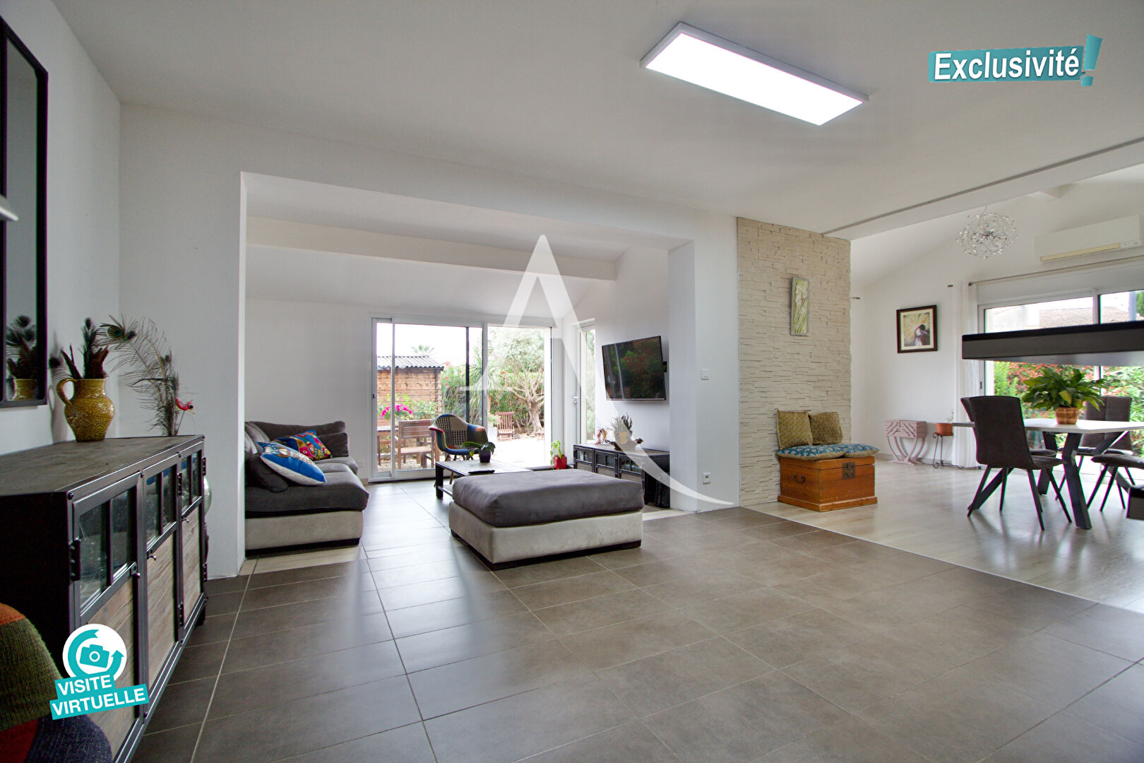 Vous profiterez d'une superbe PIÈCE À VIVRE lumineuse et climatisée de près de 60 m2 dont la partie SÉJOUR est déplafonnée . Un coin bureau prend aussi place, idéal pour le télétravail.