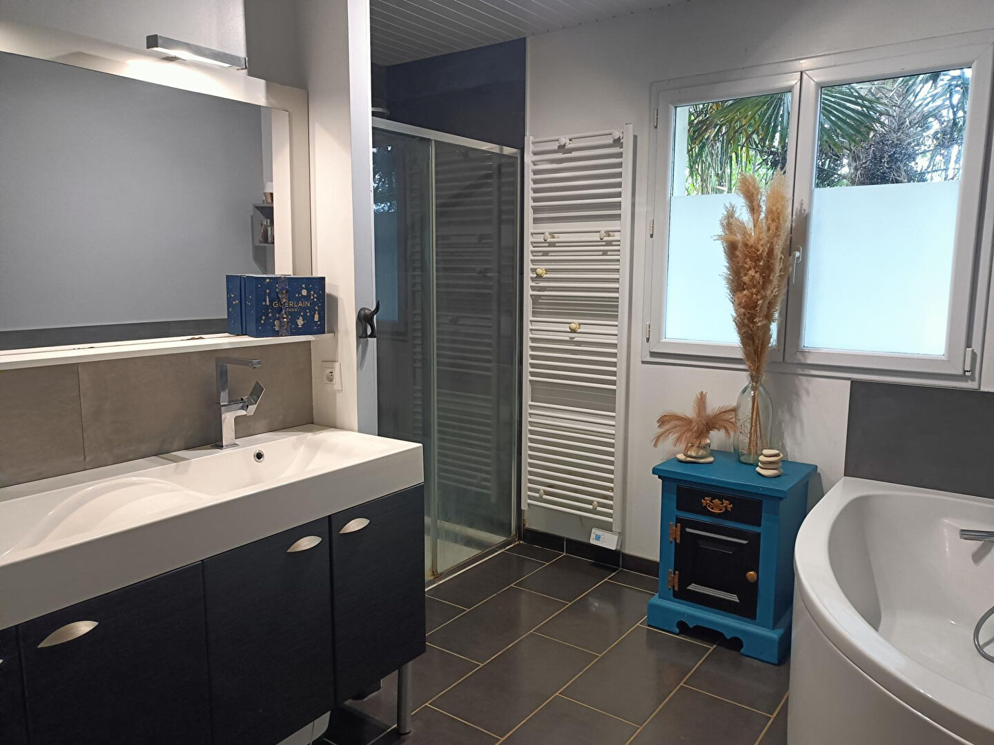 La partie nuit comprend trois chambres, une spacieuse salle de bains avec douche et baignoire, ainsi qu'un toilette indépendant. Le jardin, paysagé et sans vis-à-vis, comprend une terrasse, un cabanon et un récupérateur d'eau.