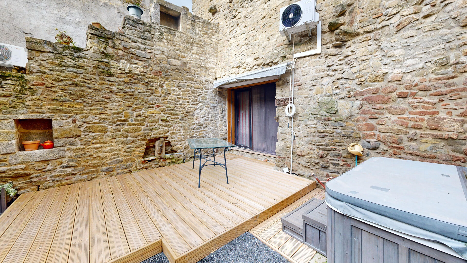 Située au coeur du village de Villegailhenc, cette maison en pierre offre une implantation centrale, à proximité immédiate des commodités et de la vie locale.