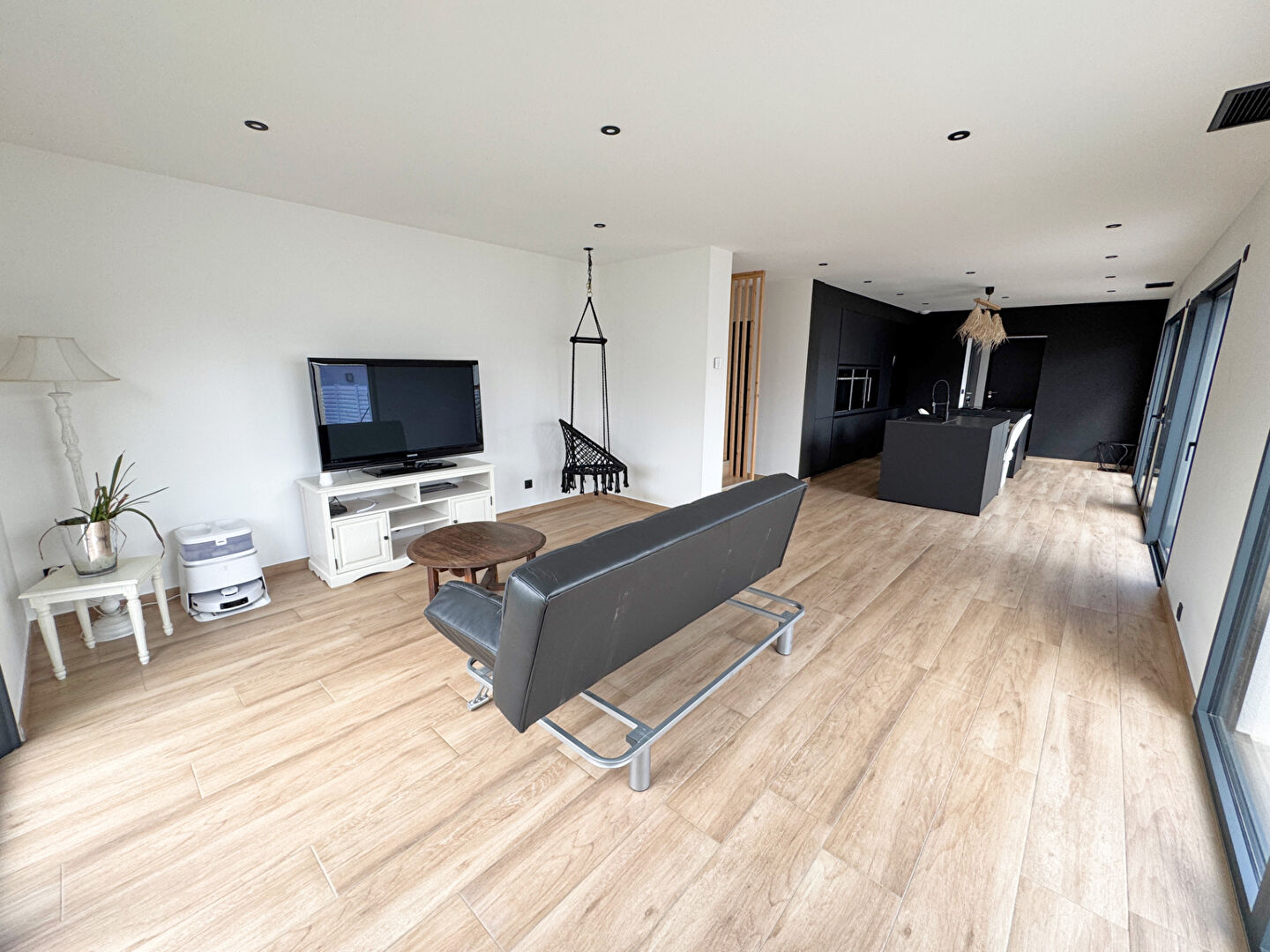 Située en plein centre de ville, cette maison contemporaine allie à la perfection élégance, volumes généreux et prestations haut de gamme. Dès l'entrée, vous serez immédiatement séduit par une spacieuse pièce de vie baignée de lumière naturelle, ouverte sur une cuisine noire ultra-moderne entièrement équipée. Le sol en grès cérame imitation bois ,renforce l'ambiance chaleureuse et raffinée de cet espace de vie convivial.