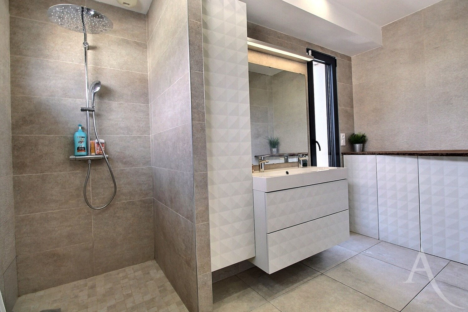 A l'intérieur, intelligemment pensée, la cuisine dinatoire et familiale est spacieuse, puis un espace salon aux ouvertures vers la terrasse carrelée et paysagée vous conduira vers la piscine à l'abri des regards.