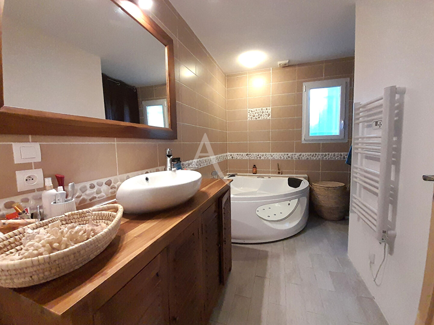 Côté confort tout a été prévu : chauffage au sol par pompe à chaleur, climatisation, double vitrage, volets aluminium mais aussi domotique vous permettant de piloter facilement plusieurs équipements de la maison.