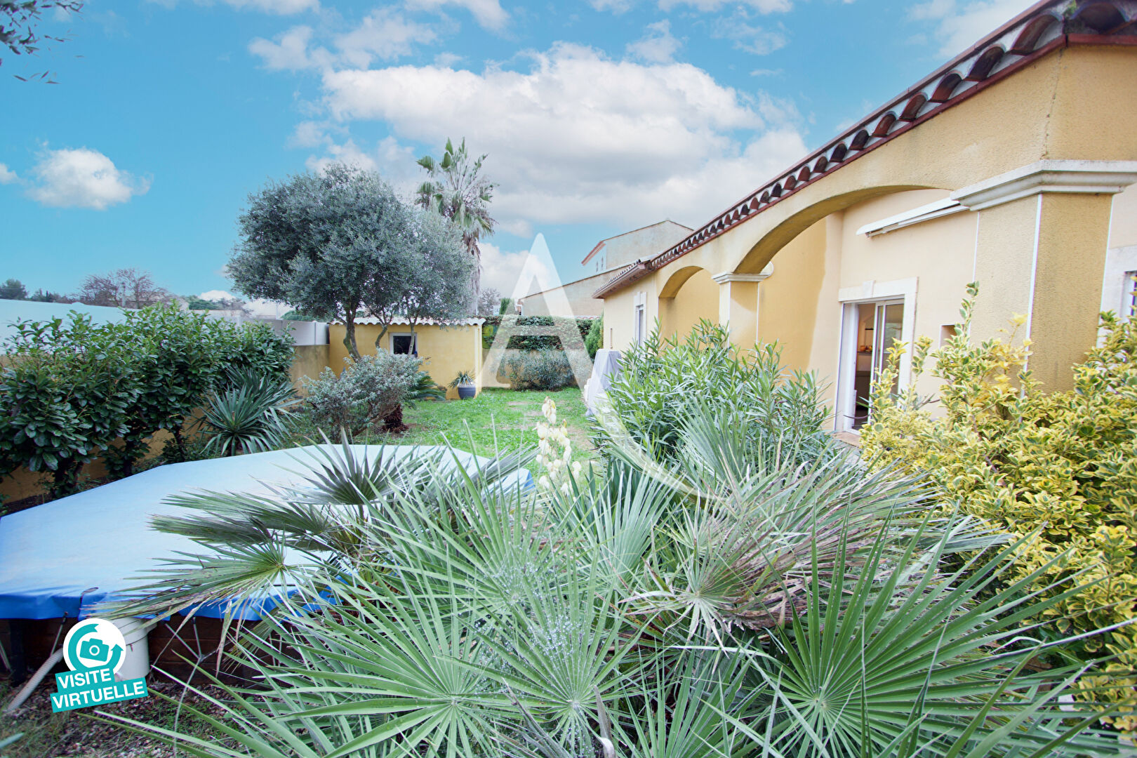 VILLENEUVE LES MAGUELONE - MAISON INDIVIDUELLE - PLAIN PIED - T5 - 112 M2 - 3 CHAMBRES - 1 BUREAU - PISCINE HORS SOL - TERRAIN DE 450 M2 ENVIRON - 5 MINUTES À PIED DU CENTRE.