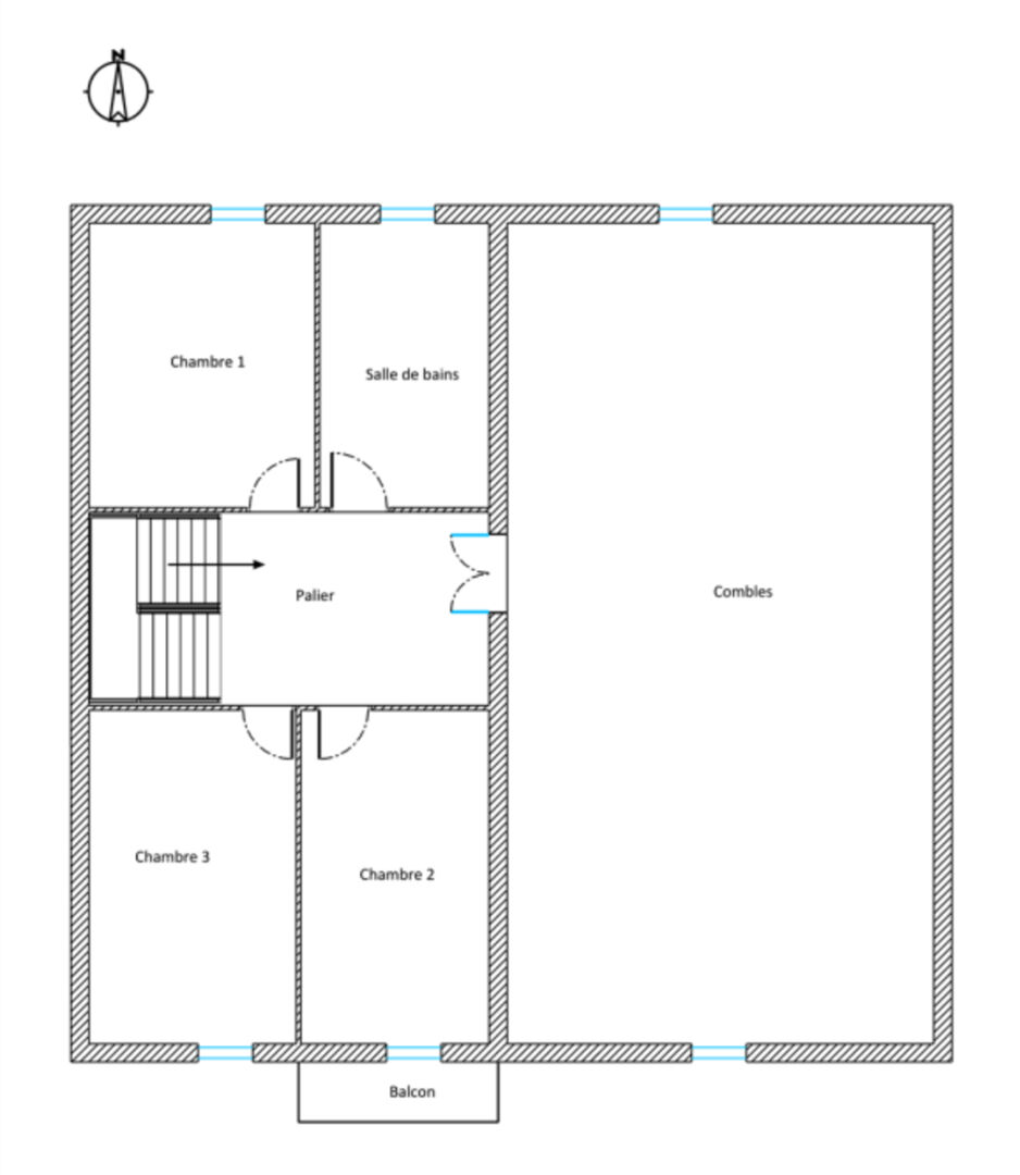 À l'étage, l'espace nuit se compose de trois chambres et d'une vaste salle de bains, idéale pour la vie de famille.