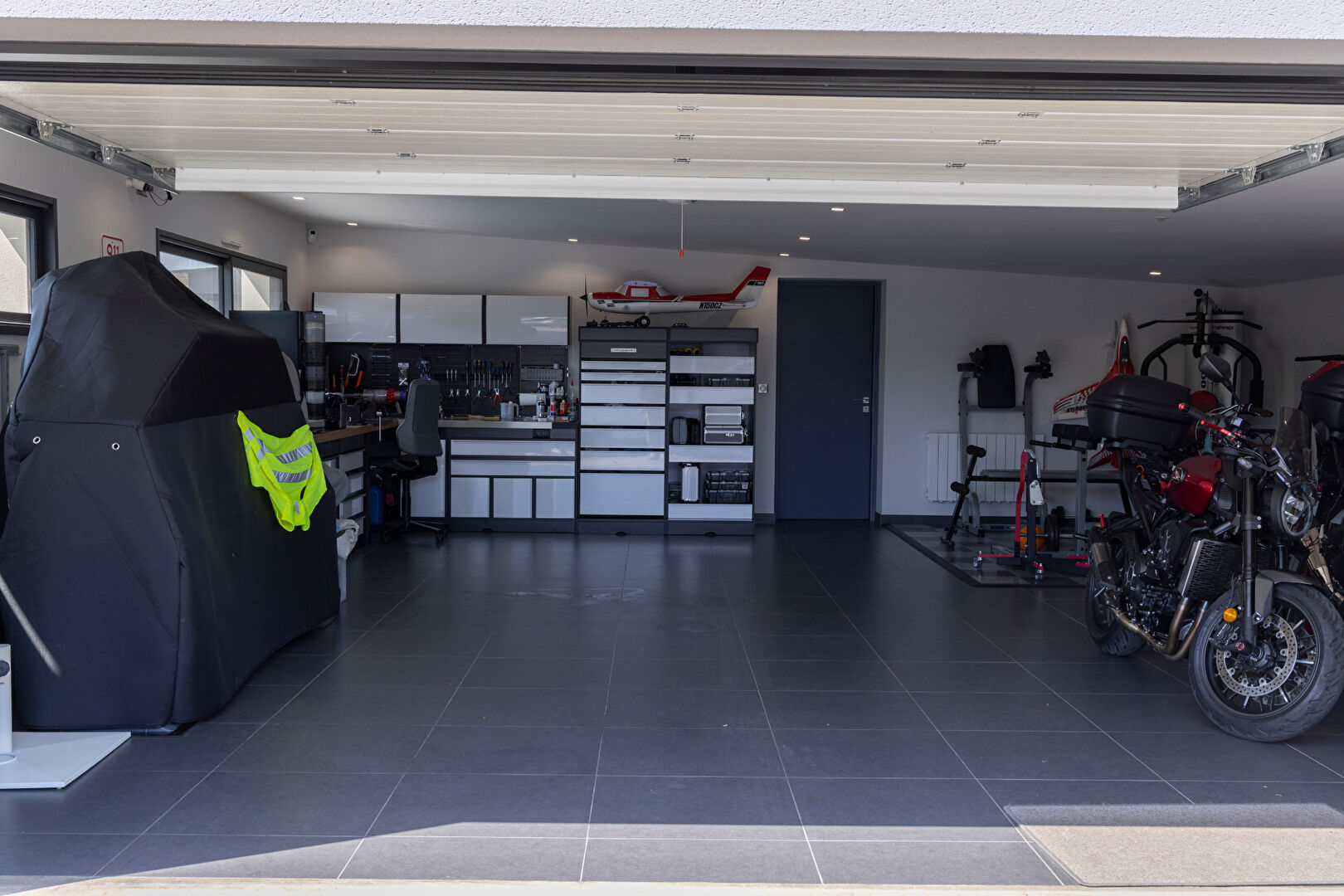 Vos véhicules seront stationnés dans un vaste garage carrelé avec servantes atelier.