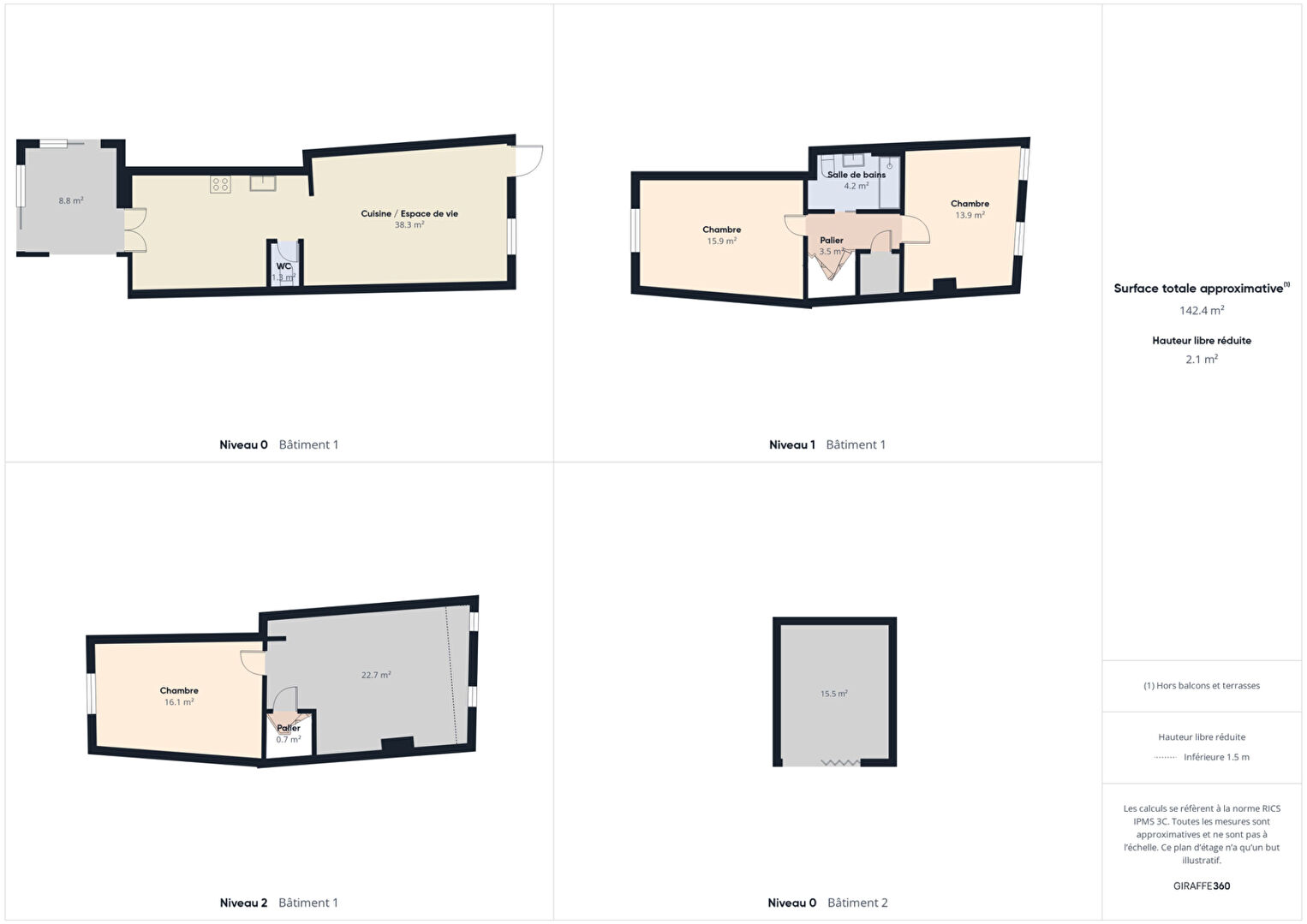 Le 2ème étage dévoile une troisième chambre de 16m2 et une belle pièce de 22m2 à aménager selon vos envies.
