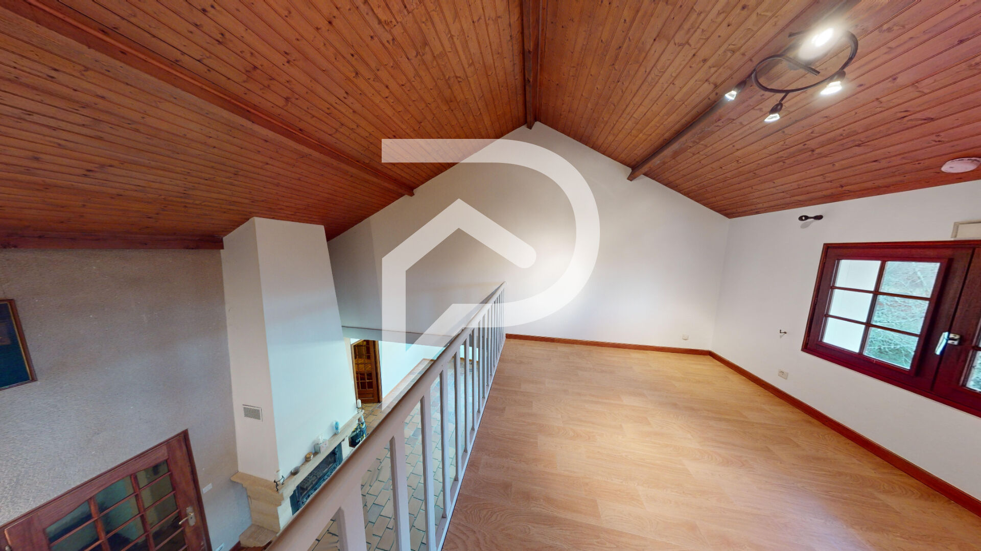 À l'étage, une mezzanine offre un espace polyvalent (bureau, coin lecture?), et donne accès à une grande suite parentale de 30 m², avec salle d'eau privative.
