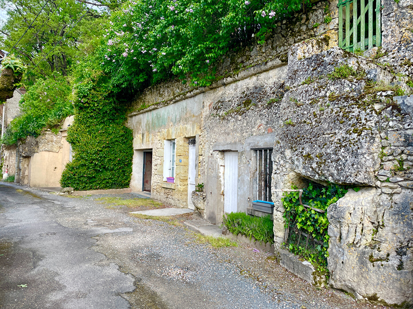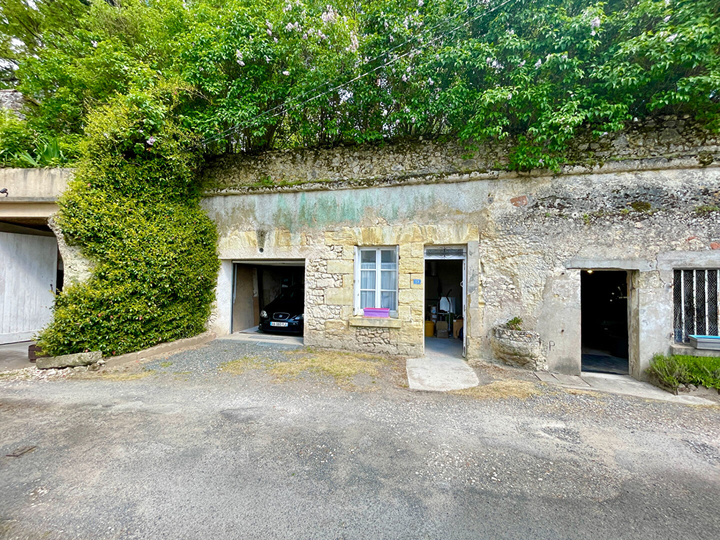 A l'extérieur vous trouverez une cour, une terrasse, un barbecue, et non attenant à la maison dans la partie troglodyte un garage, six caves ainsi qu'un terrain au dessus.