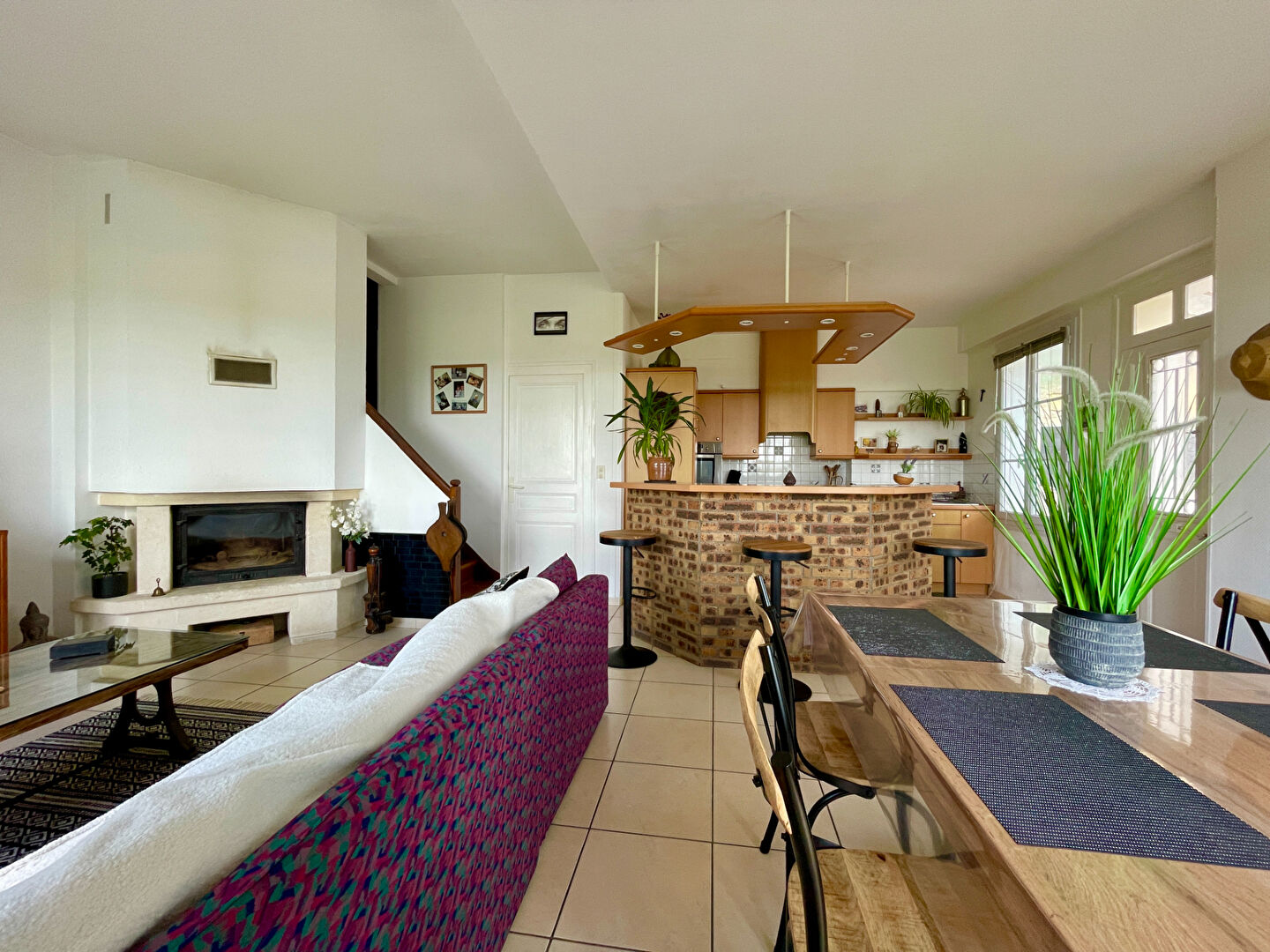 Venez découvrir cette maison composée au rez-de-chaussée d'un salon-séjour avec un insert, d'une cuisine ouverte, d'une pièce buanderie-wc.