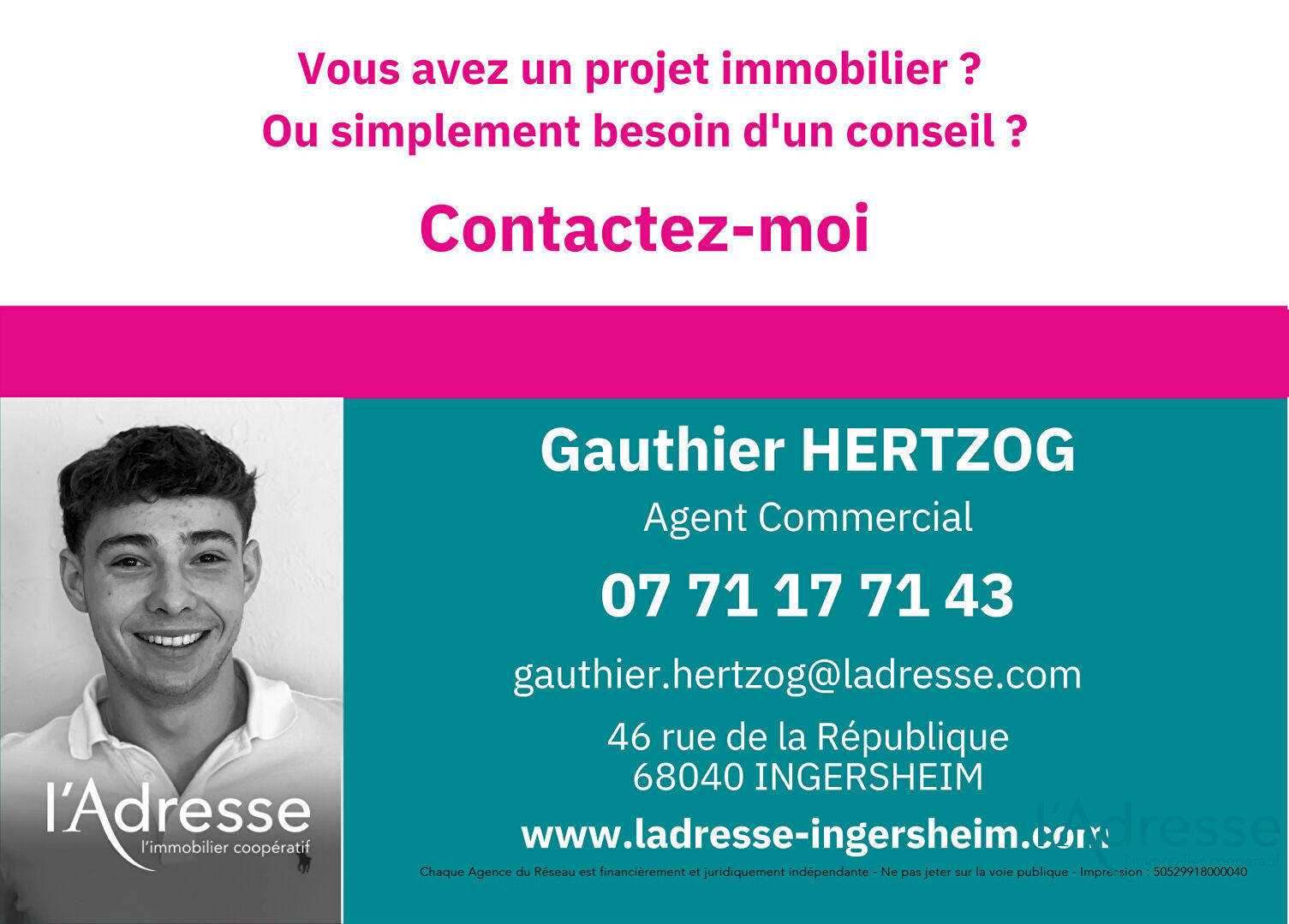 Pour le visiter contactez : HERTZOG Gauthier au 0771177143 et sur gauthier.hertzog@ladresse.com Ou l'agence au 0389770990