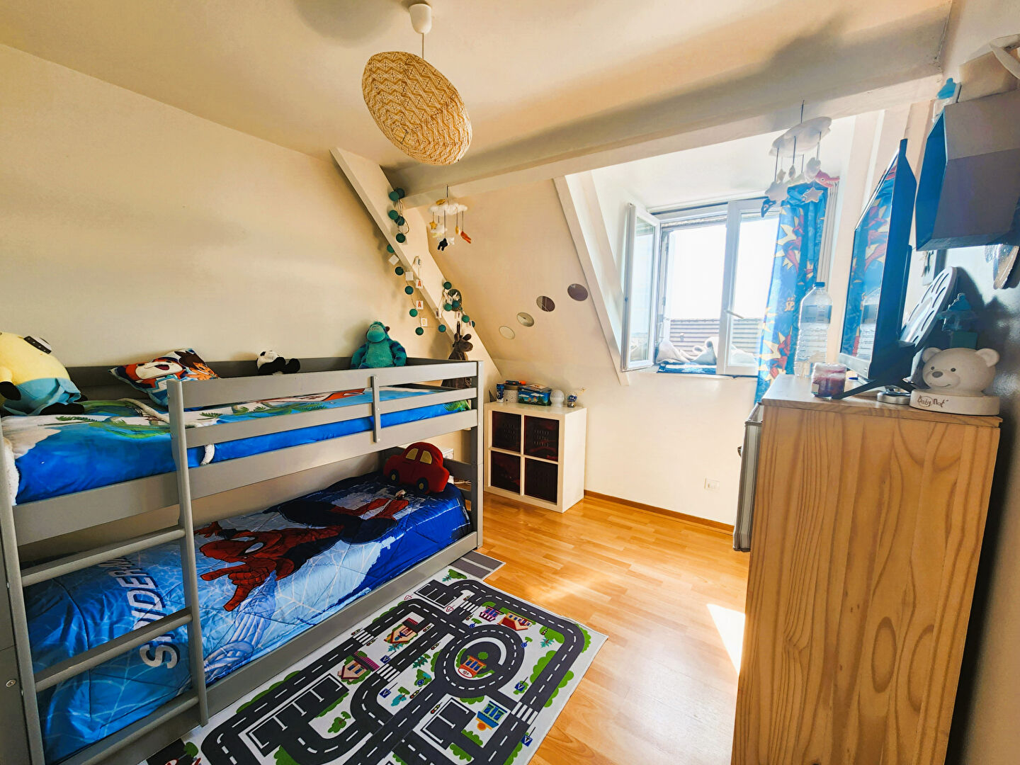 WISSOUS - LIMITE FRESNES - Dans maison Bi familiale, logement de 104 M² hab. et 179 utiles, composé comme suit au rez-de-chaussée: entrée, salle d'eau, atelier et grande pièce aménagée. Au 1er étage: triple salon salle à manger avec cheminée donnant accès sur terrasse et jardin, cuisine US et une chambre avec cabinet toilette. Au 2ème niveau: dégagement, 3 chambres dont une avec accès aux combles aménagés, salle de bains double vasque et WC. 2 places de stationnement privatives.