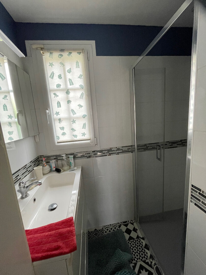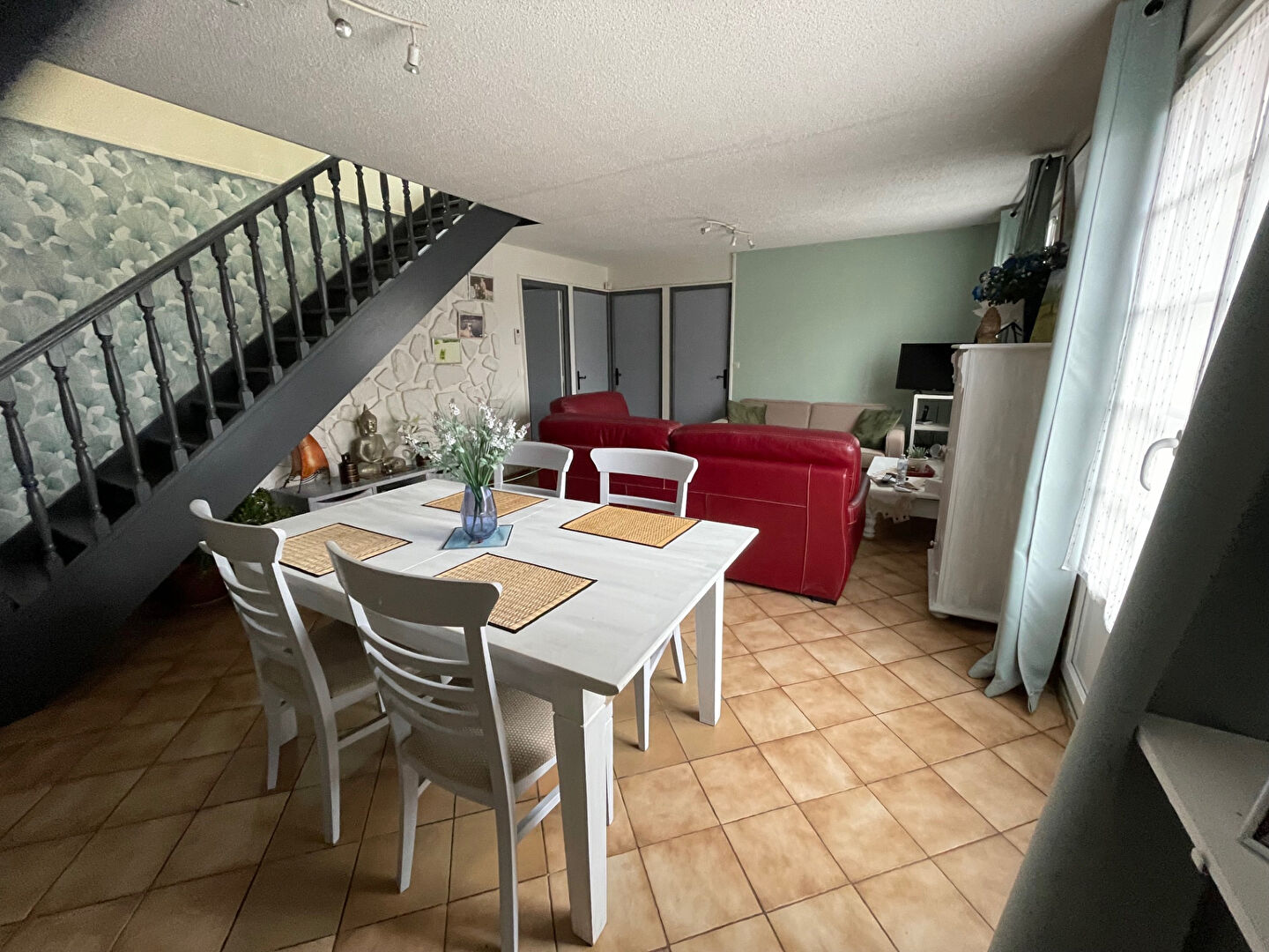 Au RDC sur élevé, entrée, cuisine aménagée et équipée, séjour double de 30 m² env. exposé sud, deux chambres, salle d'eau, WC