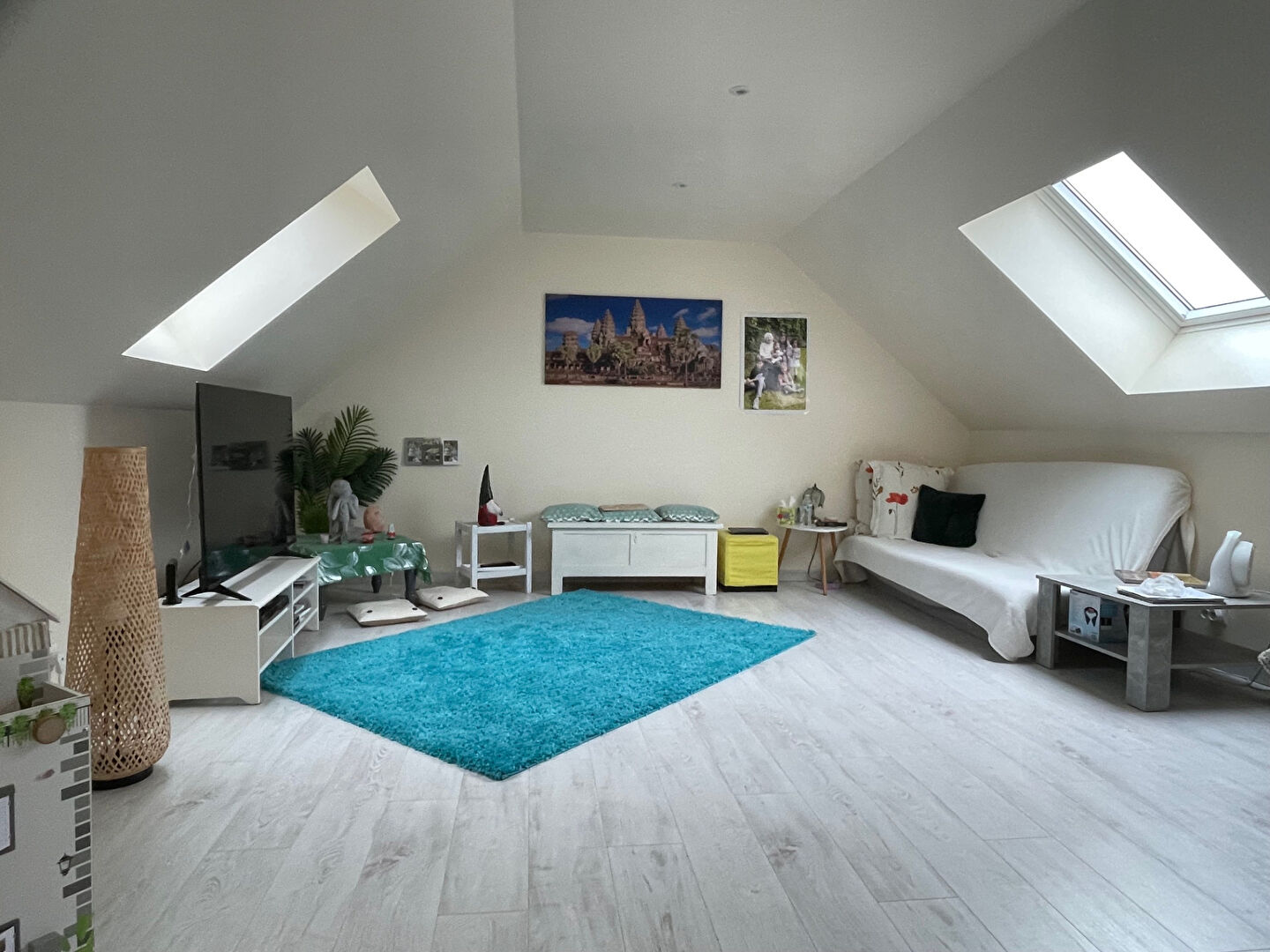 A l'étage: une grande pièce de vie de 30  m² au sol  (possibilité 4è chambre) , une chambre et une pièce prête pour l'aménagement d'une salle de bains+ WC