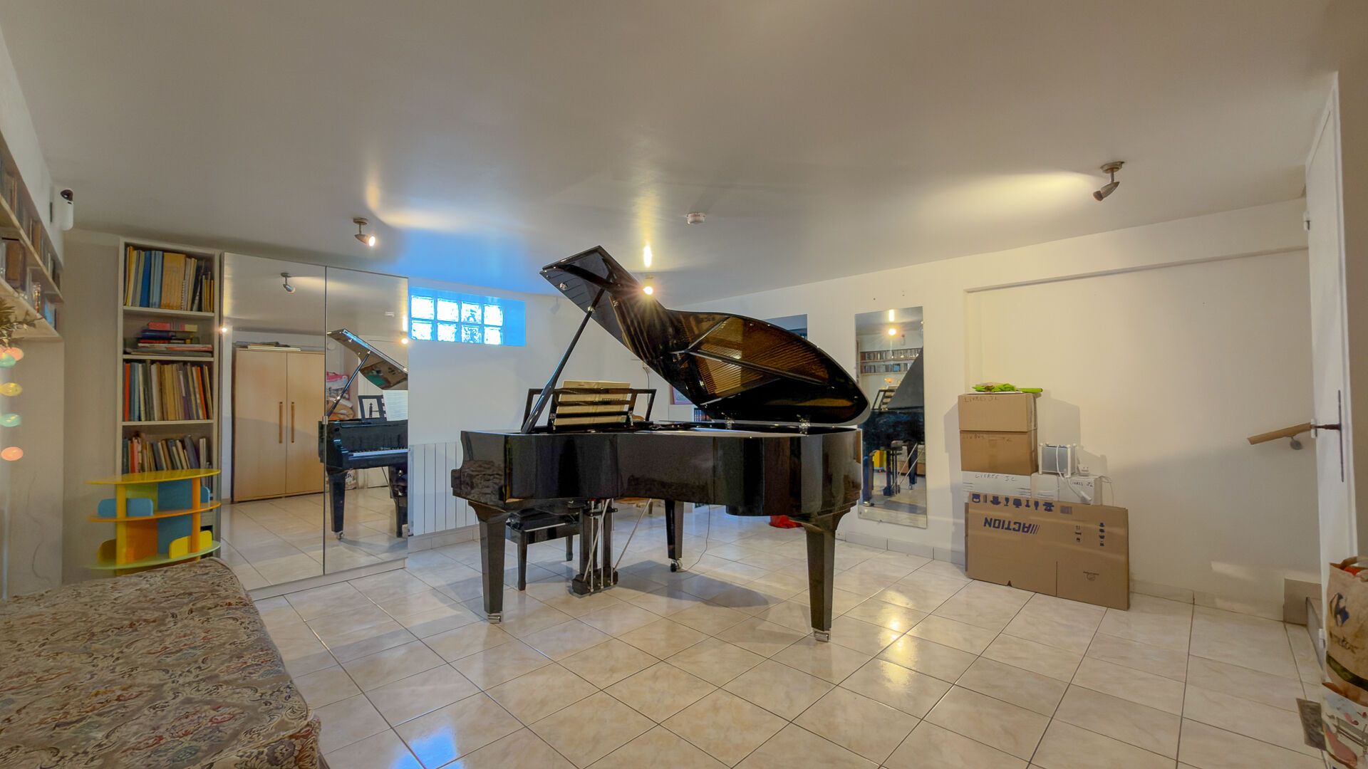 Le sous-sol aménagé constitue un véritable atout, offrant une grande salle de musique ou de jeux, un bureau, cave à vins et un garage.