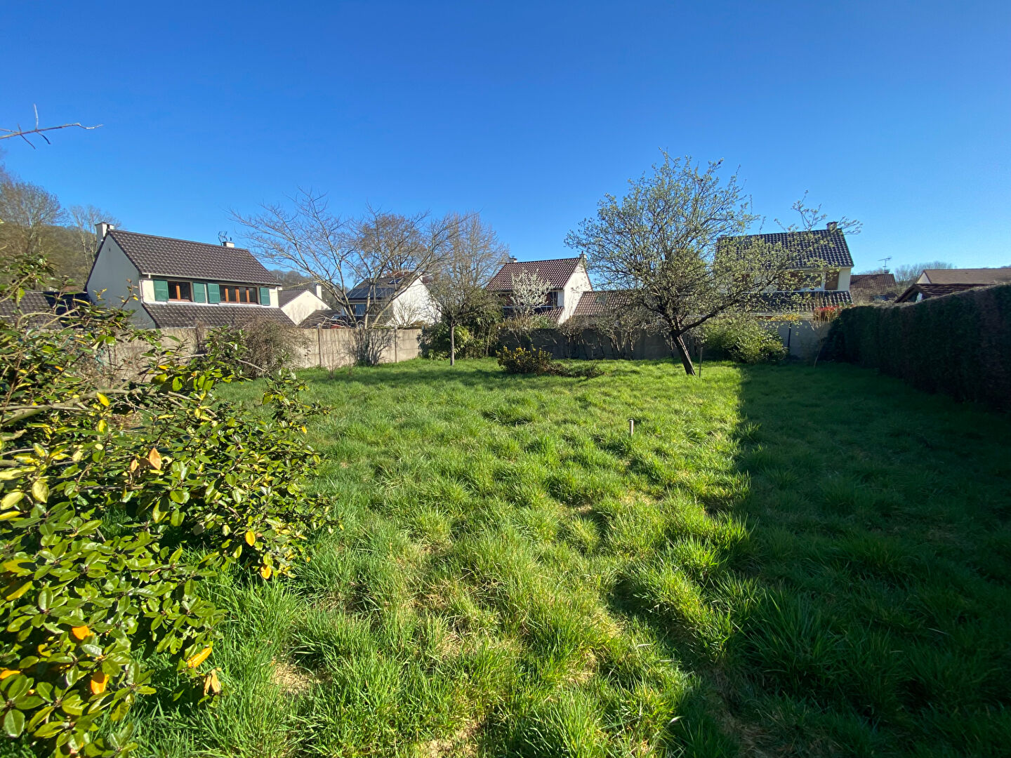 Dans un quartier très calme, à 15 mn à pied de la gare RER la Hacquinière et des commerces, beau terrain plat de 563 m²  en lot arrière.