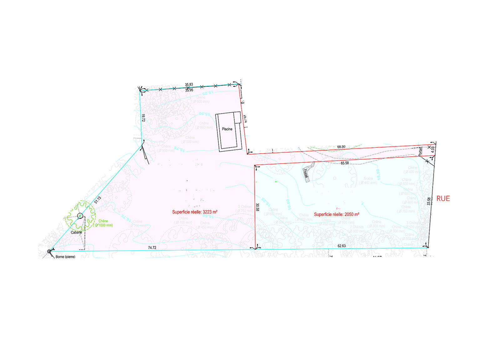 Étude géométrique d'implantation de lots selon PLU disponible.