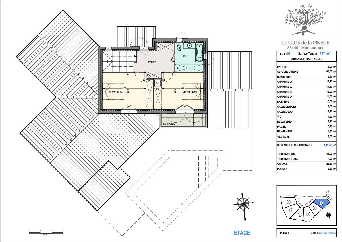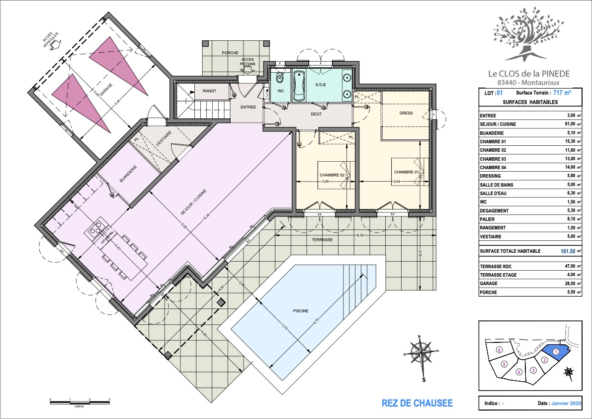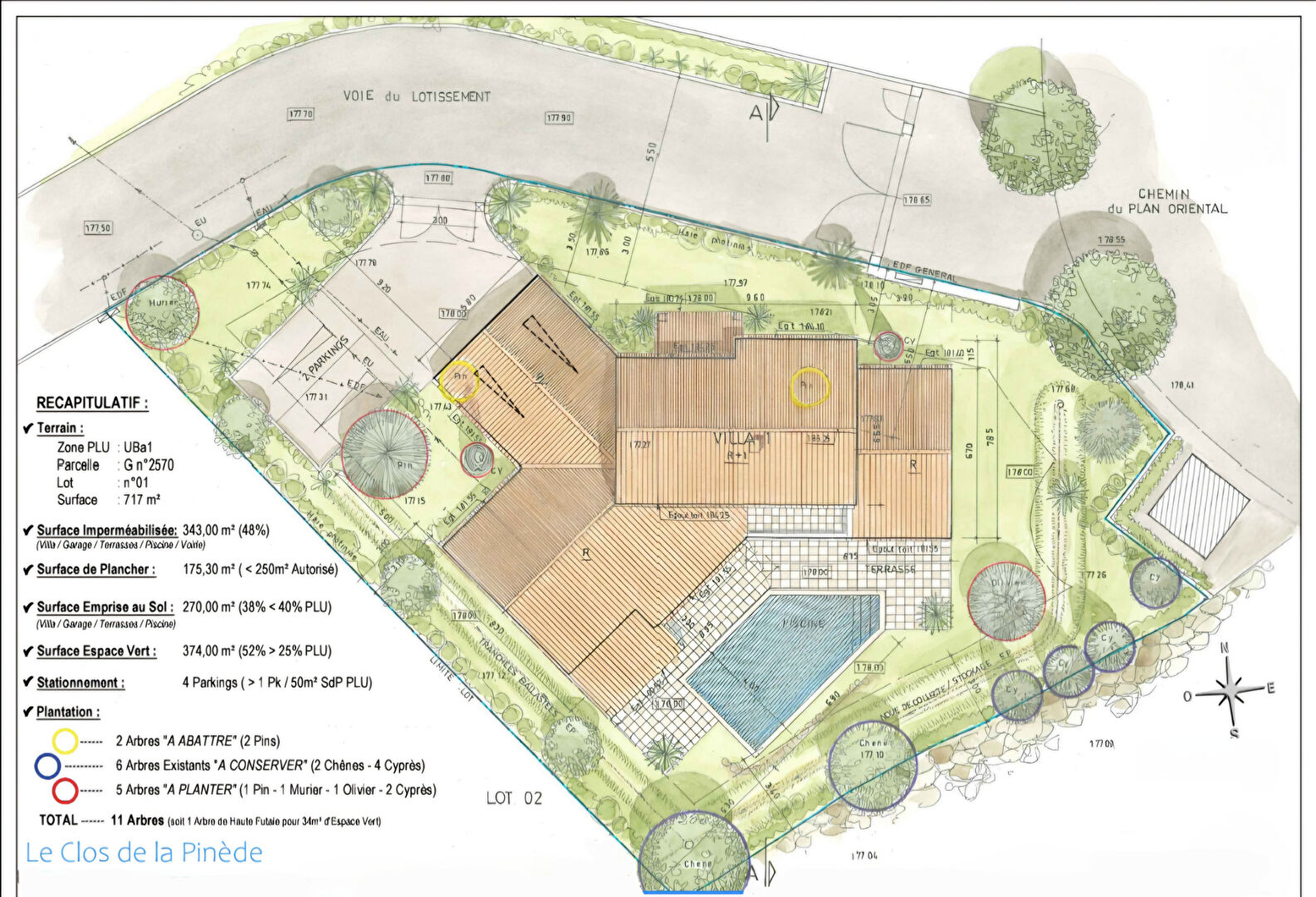 Au coeur d'un lotissement de 6 villas, venez découvrir ce terrain plat viabilisé de 717 m² bénéficiant d'un permis de construire purgé de tout recours pour la construction d'une villa 5 pièces d'une superficie de 161,5m² avec piscine et garage. Libre constructeur