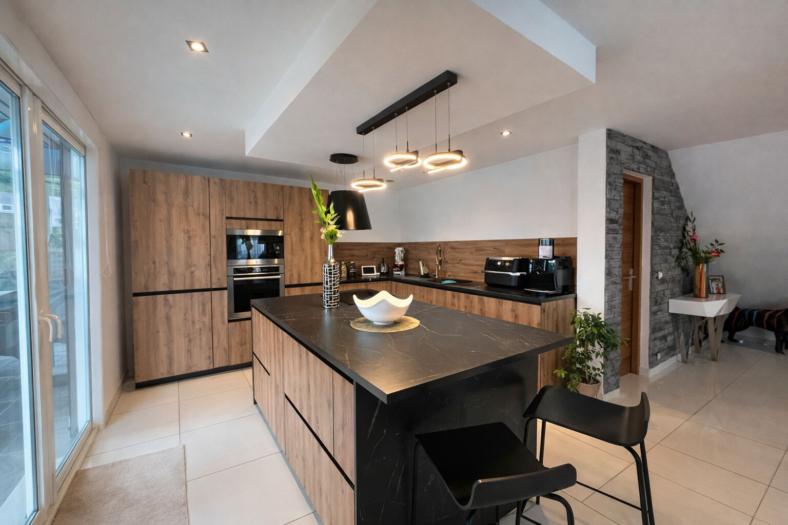 Dès l'entrée, les volumes impressionnent. Le vaste espace de vie de plus de 60 m² réunit séjour, salon et cuisine dans une atmosphère lumineuse et chaleureuse, pensée pour les moments de partage et les instants en famille. La cuisine, récente et parfaitement équipée, s'intègre avec modernité à cet espace ouvert, véritable coeur de la maison.