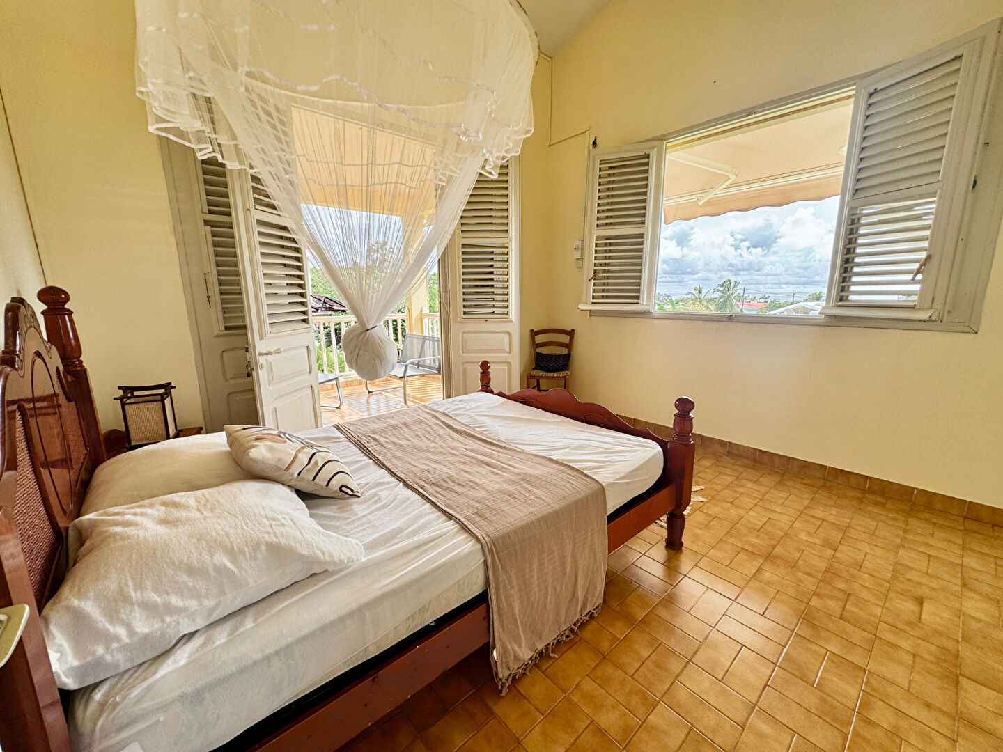 Une terrasse permet aisément d'installer un espace repas et un salon d'extérieur pour profiter des alizées et de sa vue magnifique sur la mer.