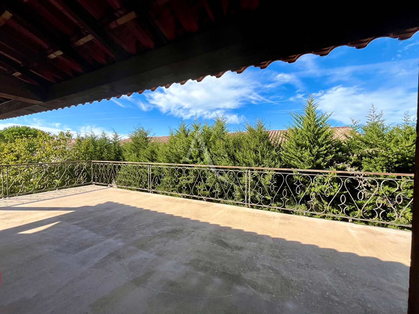 À l'étage : un séjour lumineux donnant sur un grand balcon, une cuisine indépendante, deux grande chambres, une salle de bains et une belle terrasse.
