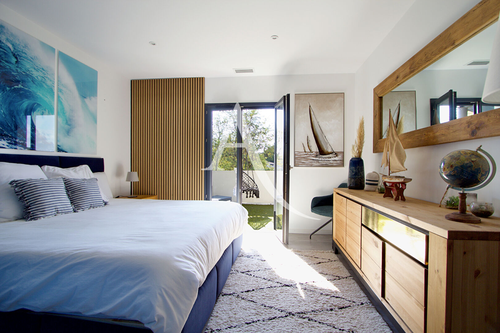 Dès l'entrée, vous serez séduit par les volumes et la luminosité du vaste salon-séjour sublimé par sa cuisine américaine haut de gamme entièrement équipée et sa cave à vin intégrée, idéale pour recevoir en toute élégance.