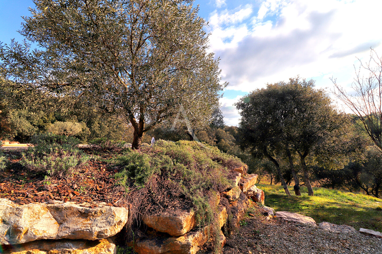 Ce beau terrain clos, avec enrochement et arboré, sans vis à vis, dans un environnement au grand calme, dispose de nombreux espaces : détente, piscine, plusieurs parkings...