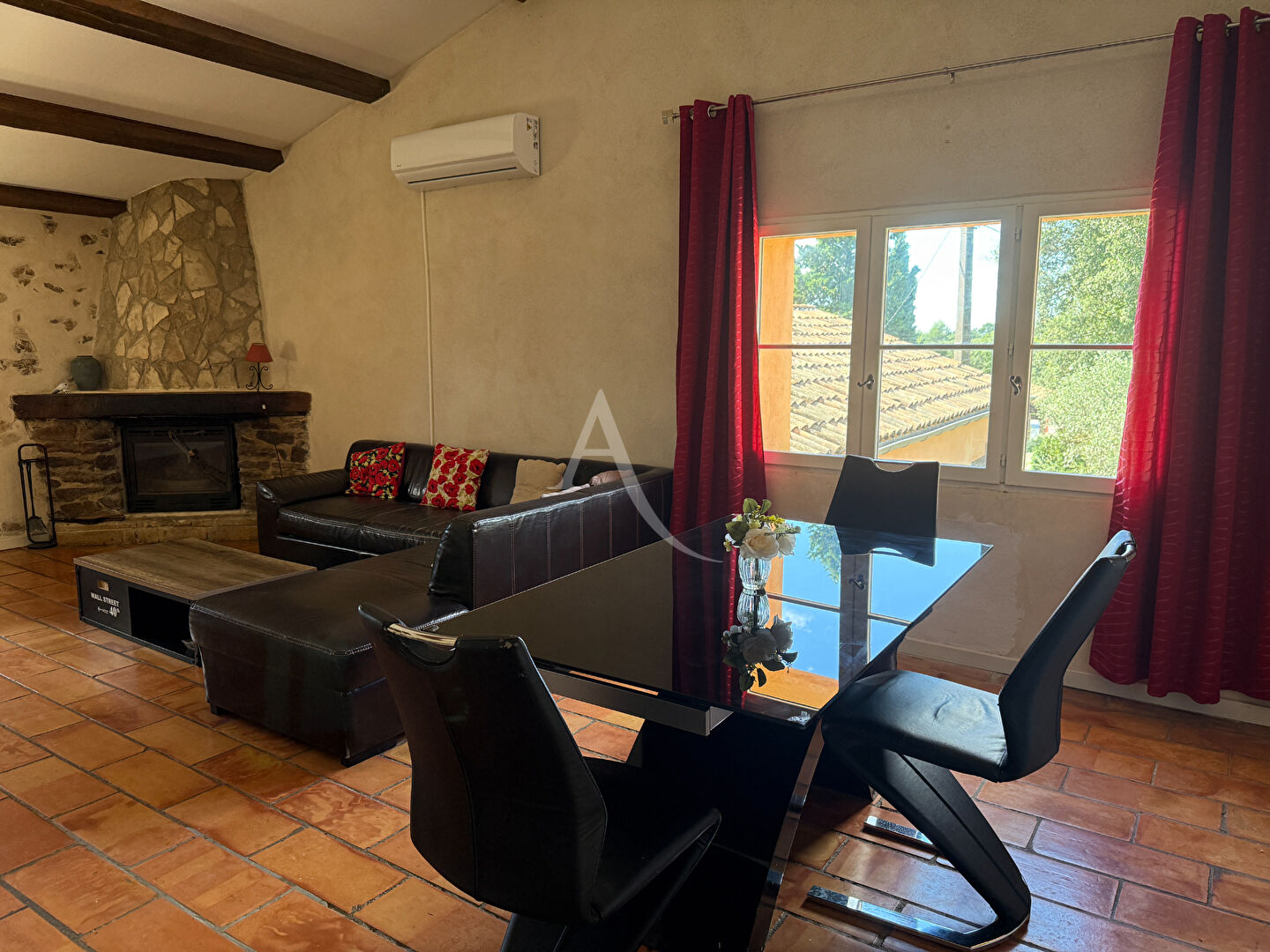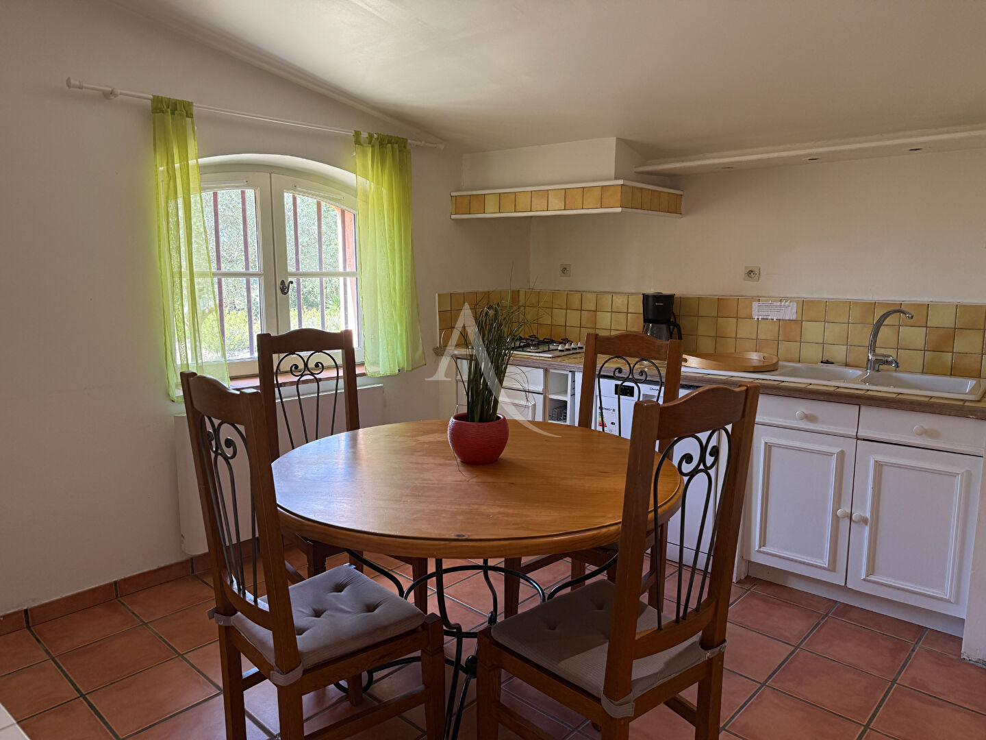 Elle se compose d'une lumineuse cuisine provençale, d'un spacieux salon séjour avec climatisation et cheminée insert, de deux chambres, une salle d'eau.