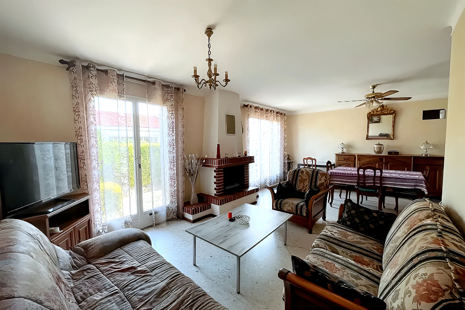 Villa de plain-pied lumineuse se compose d'un séjour de 33 m² avec cheminée, ouvrant directement sur le jardin.