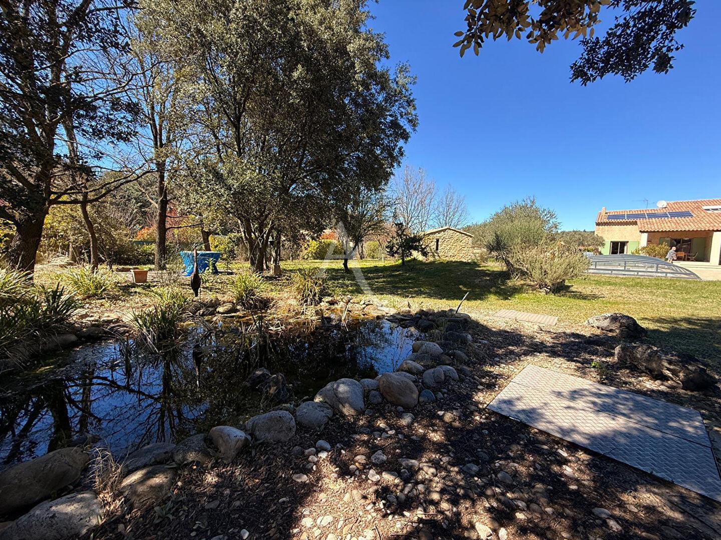Prestations de qualité : géothermie, panneaux solaires avec revente, forages, arrosage automatique, tout à l'égout, eau de ville, double accès avec portails motorisés.