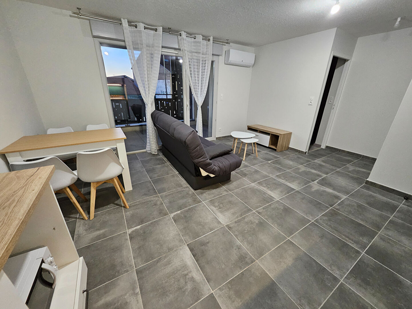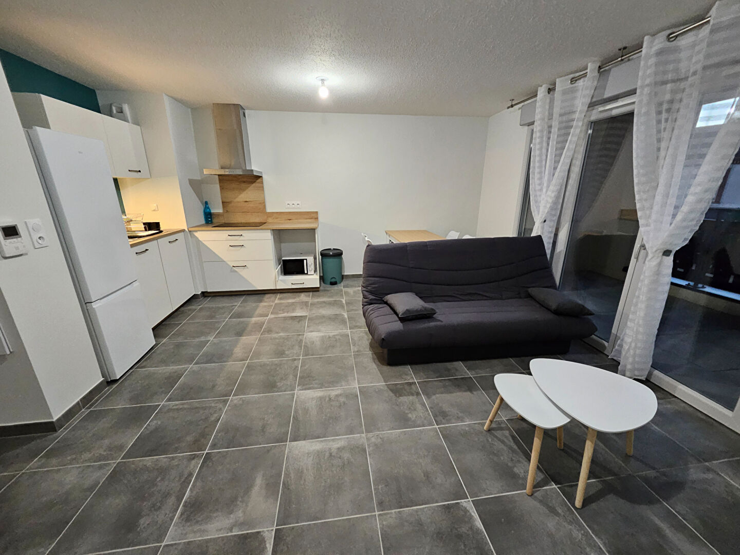 Très joli T2 meublé entièrement neuf , cet appartement vous propose une belle cuisine équipée et aménagée donnant sur la piece de vie avec accès à la terrasse.