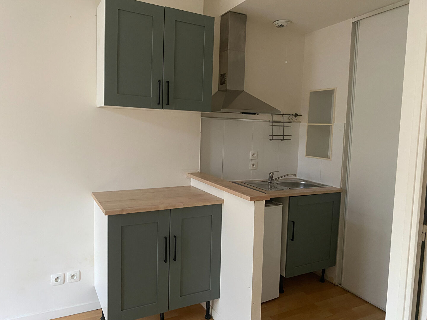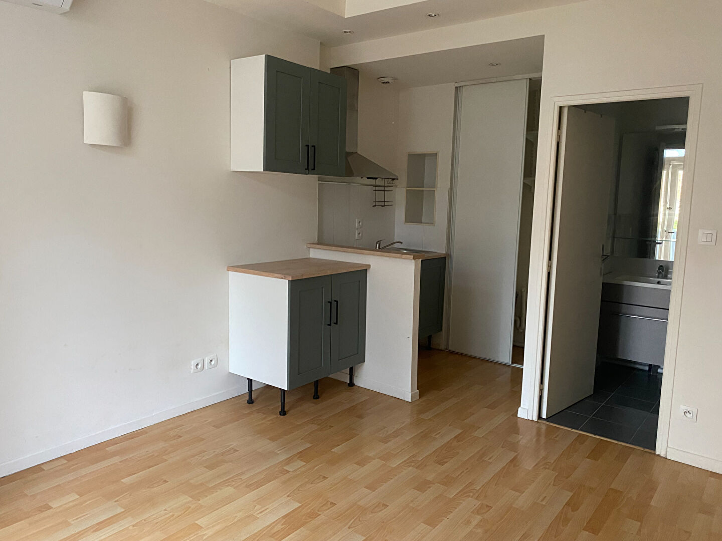 Coin kitchenette, chambre avec placard , salle d'eau et WC séparé.