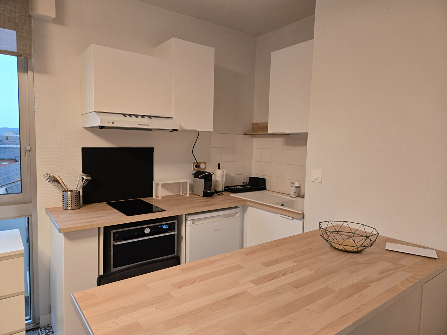 Espace optimisé, mobilier de qualité, cuisine équipée moderne( lave vaisselle, four frigo), salle d'eau élégante, nombreux rangements.