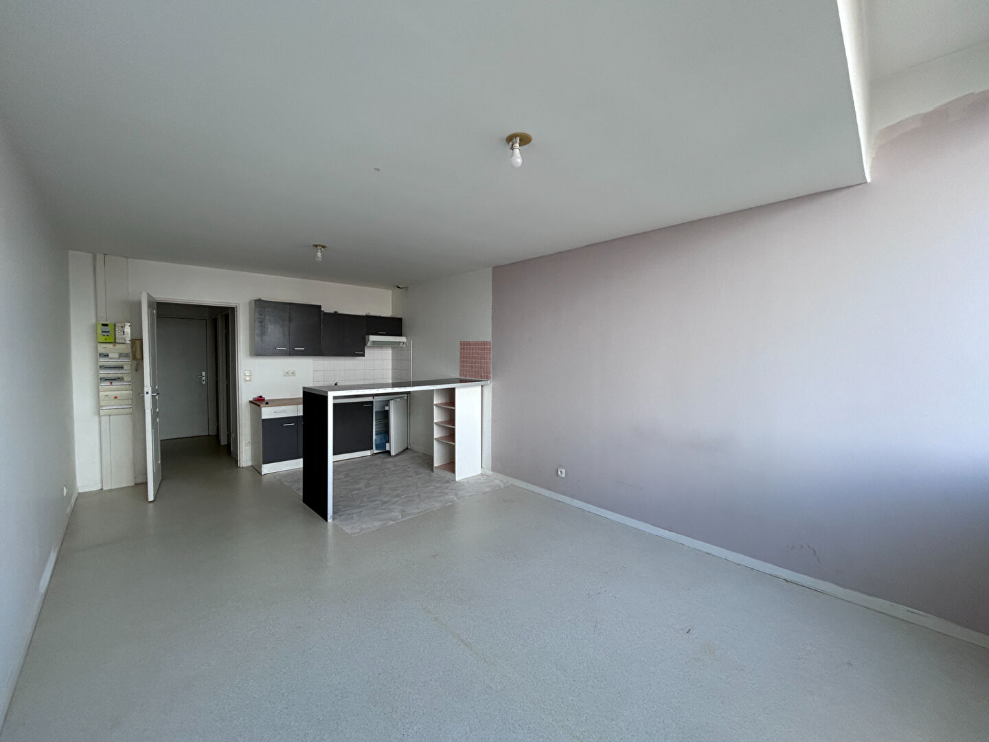 Le bien, situé au 2e étage avec ascenseur, dispose d'un couloir avec de grands placards desservant une salle de bains avec emplacement pour machine à laver, des WC et une belle pièce à vivre très lumineuse avec cuisine.