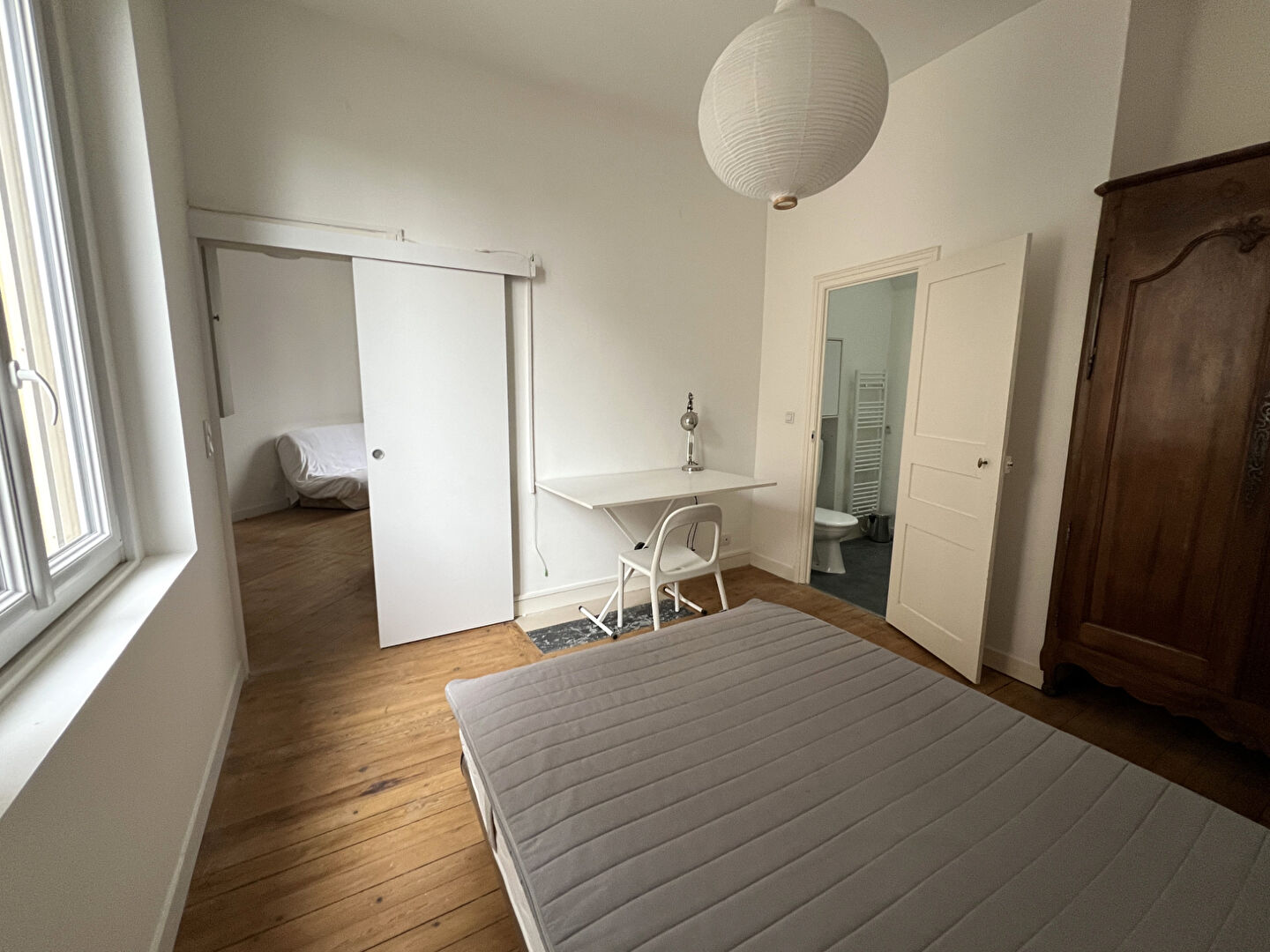 Disponible dès maintenant A LOUER (meublé) - ANGERS GARE/RUE JEAN BODIN. T2 MEUBLE de 38 m² comprenant un salon-séjour lumineux avec une cuisine aménagée et équipée, une chambre avec accès à la salle de bains et un WC. Place de parking sécurisé et privé. Placard. Proche gare commerces et bus.
