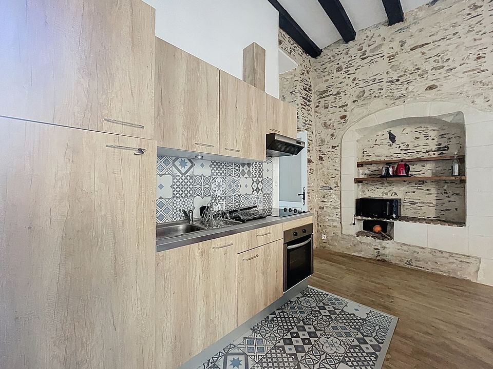 Très bel appartement meublé quartier Doutre, avec petite terrasse très agréable. Composé d'une pièce de vie avec cuisine aménagée et équipée ( plaque induction, hotte, four et frigo-congélateur) de deux chambres, d'une salle de douche et WC et d'une petite cour mitoyenne pour vélo . proche place Rochefoucault.