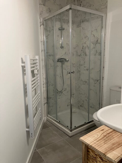 Bel appartement entièrement rénové, situé au 2ème étage sans ascenceur comprenant , une entrée, une pièce de vie avec une kitchenette aménagée et équipée (plaque vitro, frigo top, micro ondes) un espace nuit séparé avec une salle de douche et WC.