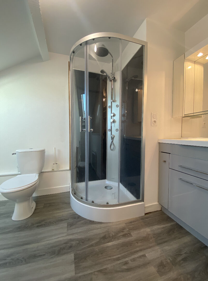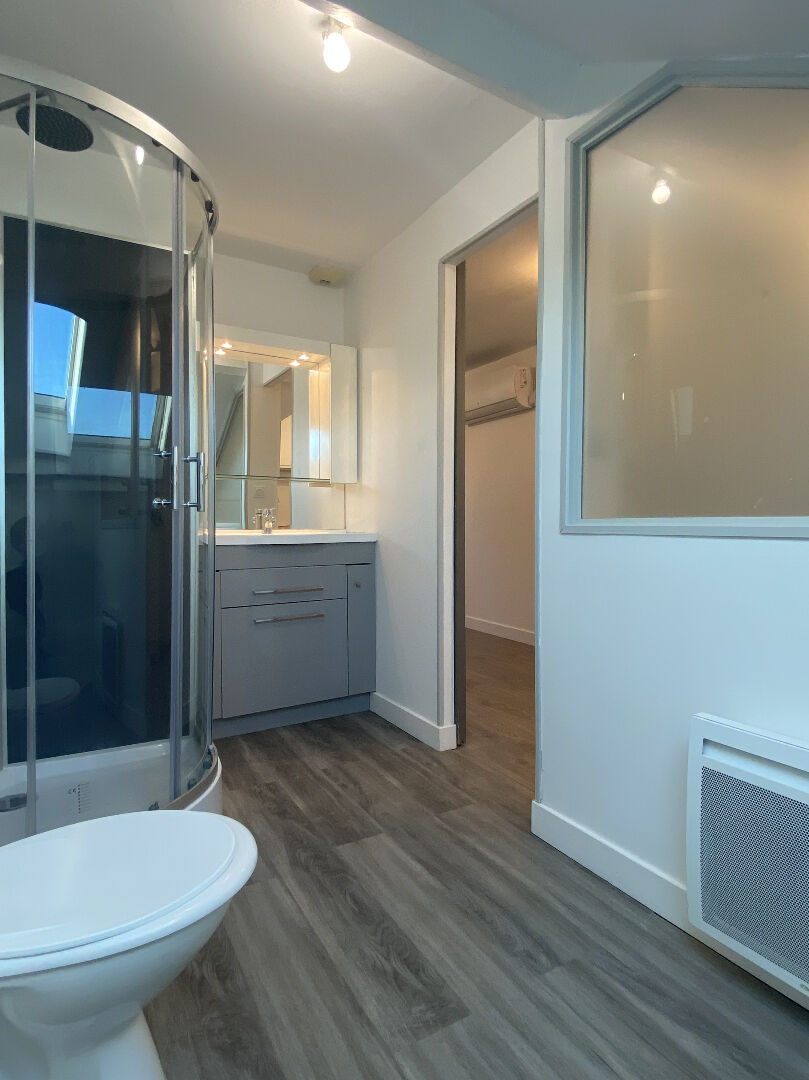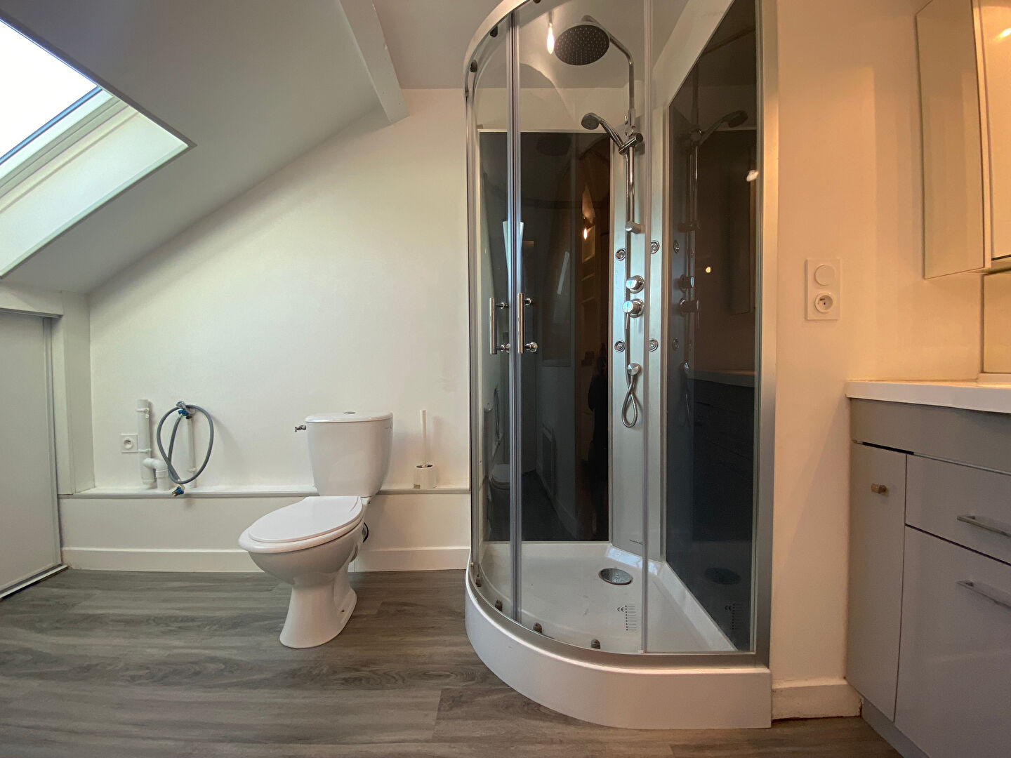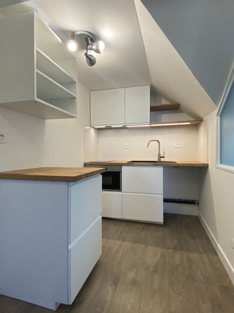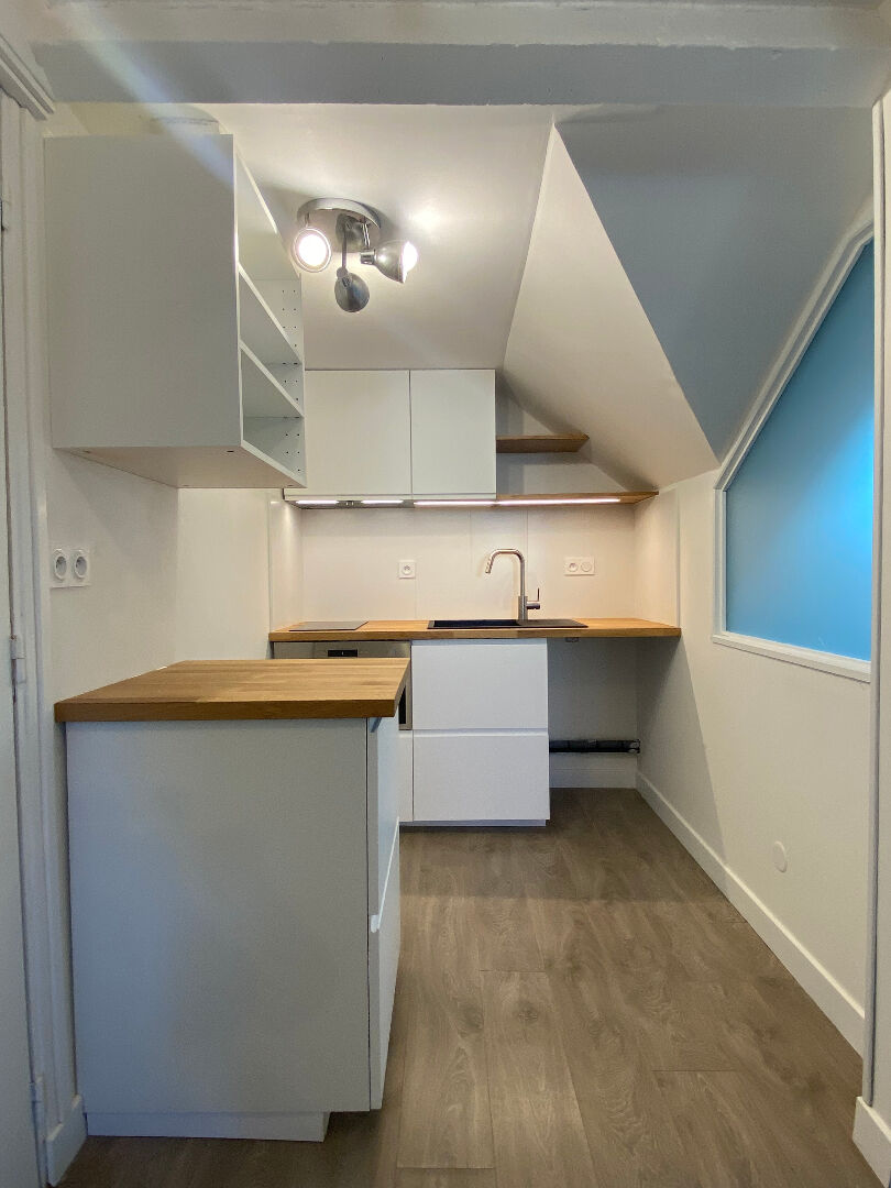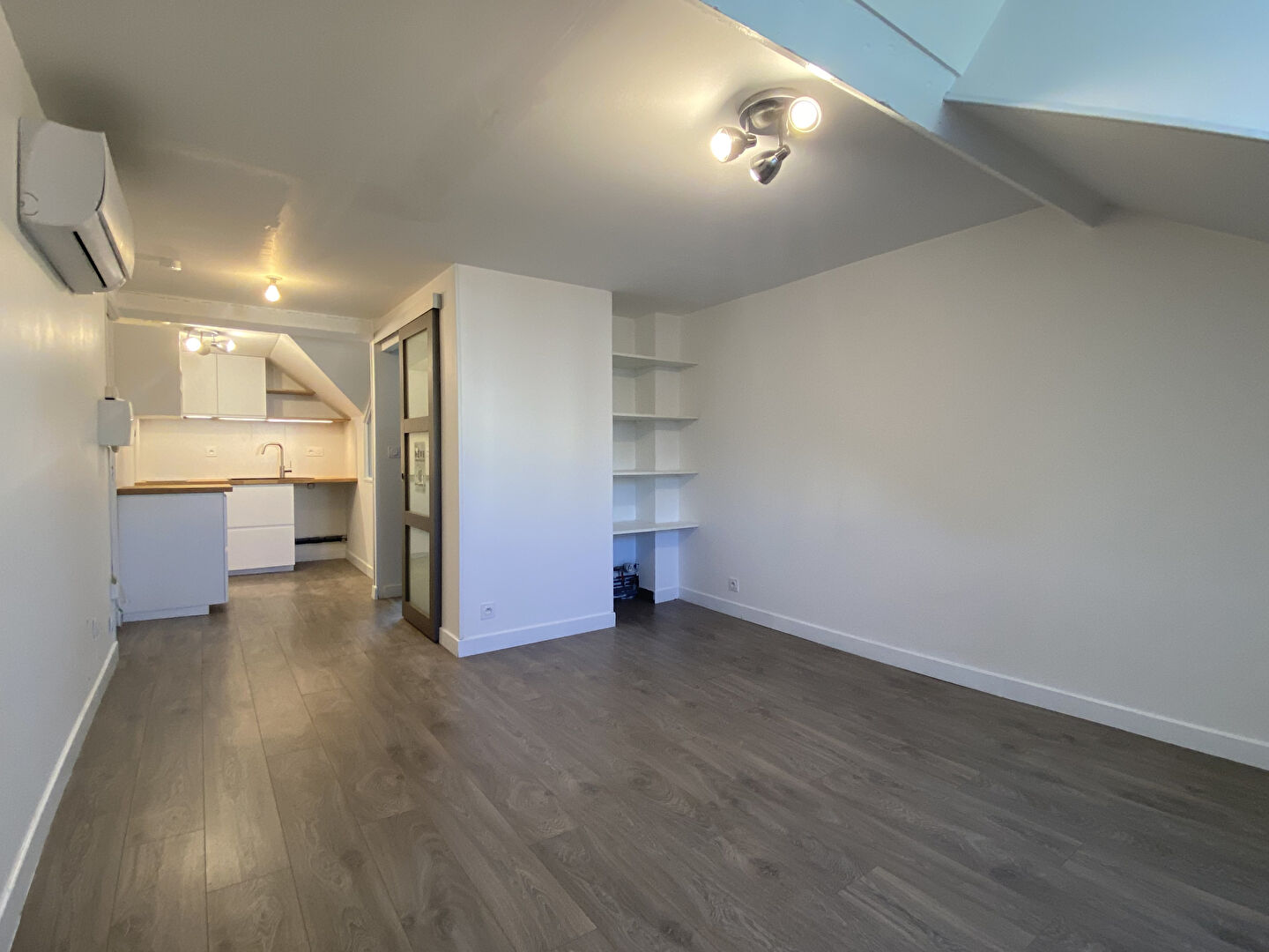 Disponible le 5 Décembre A LOUER (non-meublé) - rue des champs verts, un studio de 29 m² au sol entièrement rénové offrant une pièce de vie avec rangement, une belle cuisine aménagée et équipée (meubles hauts et bas, micro-ondes, plaque de cuisson, hotte, réfrigérateur), une salle d'eau avec WC (cabine de douche, meuble vasque, WC, placard et branchement machine à lave). L'appartement dispose d'une climatisation réversible couplée à un chauffe thermodynamique, pour un confort optimal et des économies d'énergie considérables. Une cave vient compléter l'appartement permettant d'y stocker un vélo.