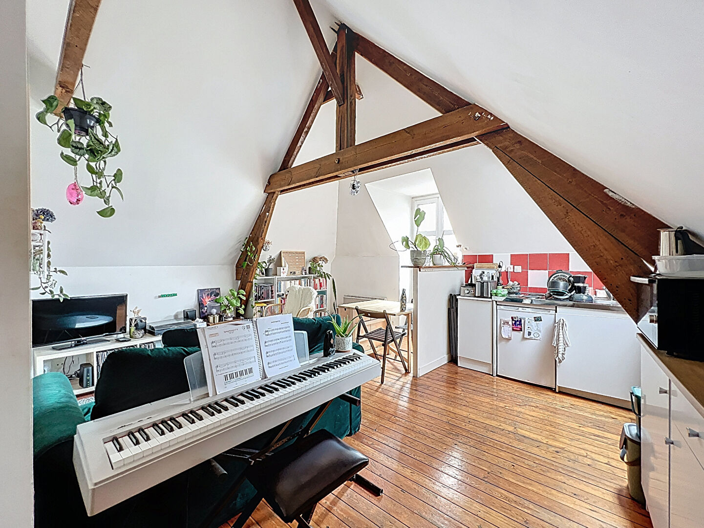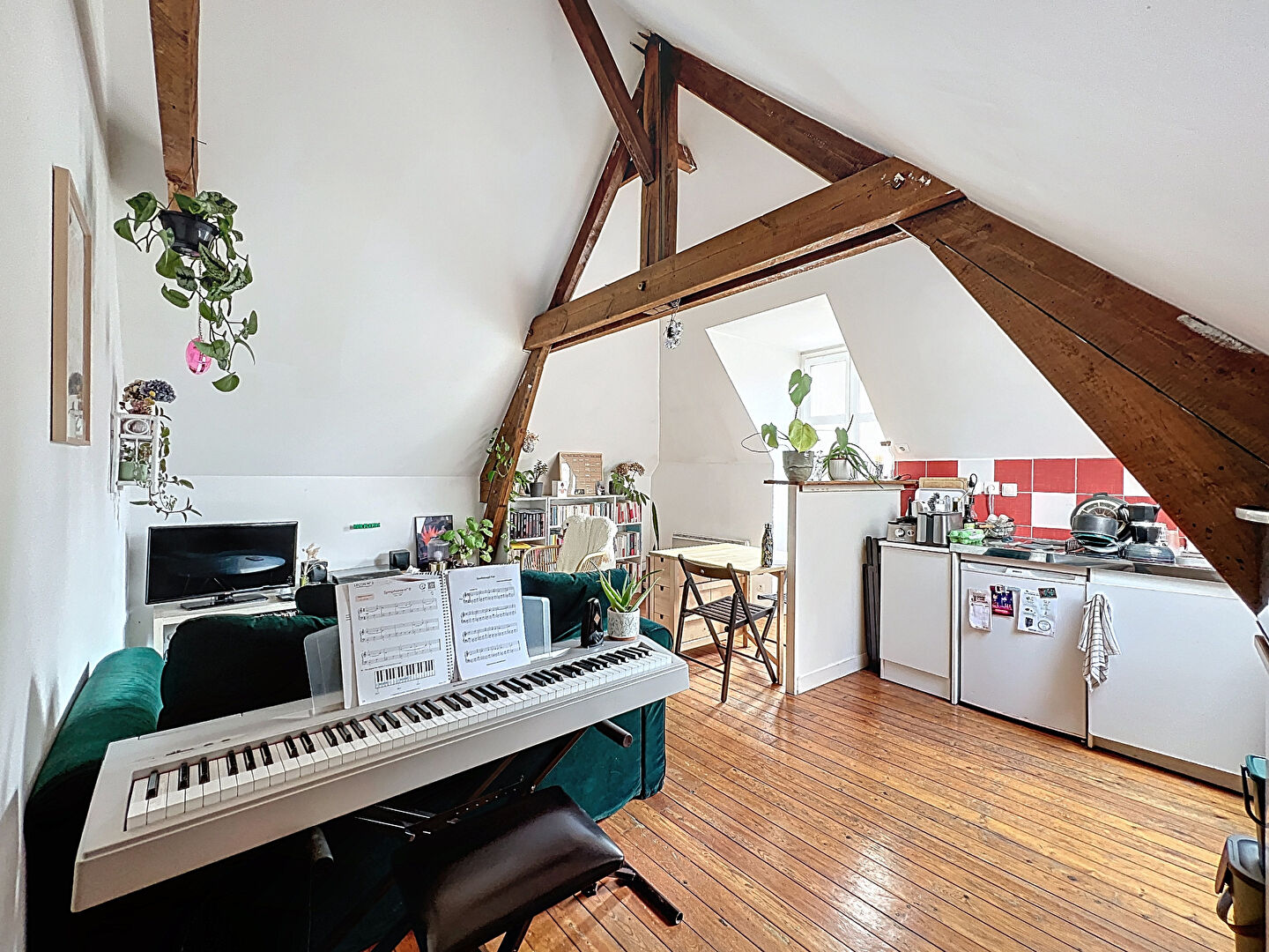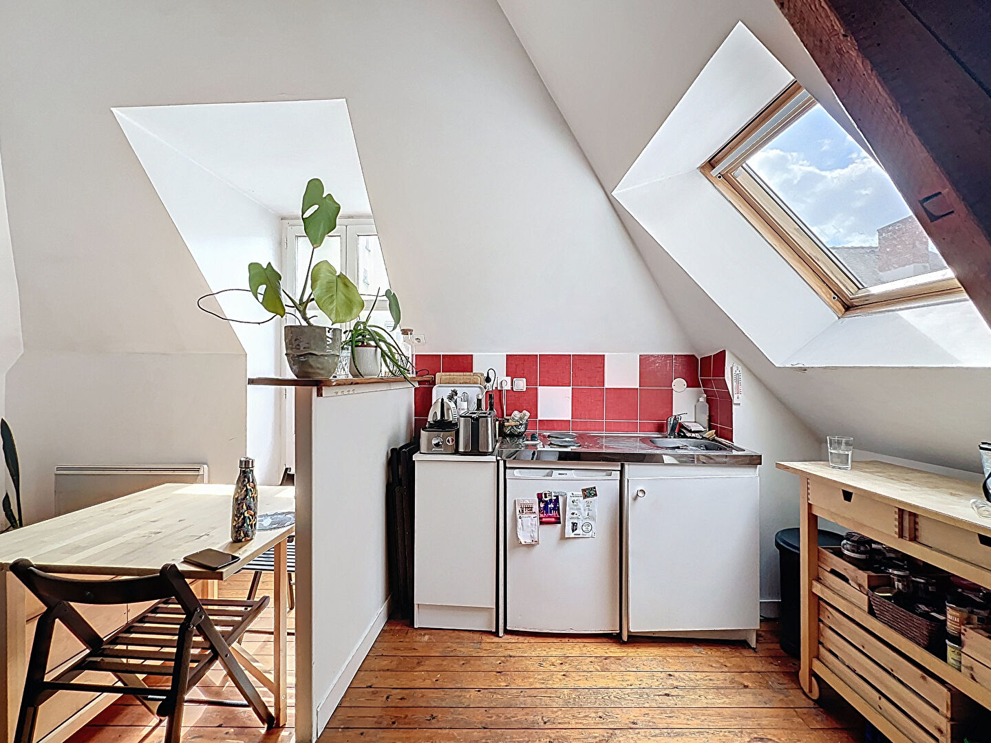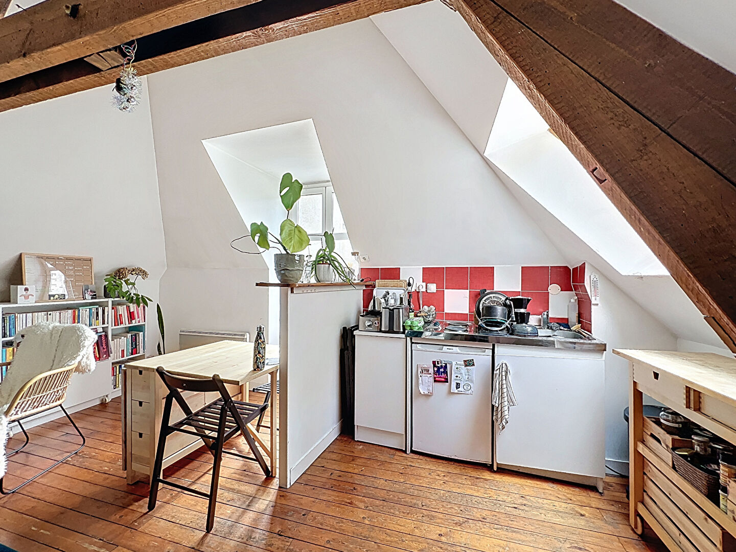 Disponible le 16 Juin A LOUER (non-meublé) - ANGERS HYPER CENTRE/RUE VALDEMAINE. T2 au dernier étage, comprenant: une entrée sur salon/séjour ouvert sur kitchenette- une chambre - une salle de douche avec WC - un cellier sur le palier. Proche commerces , tramway et bus.