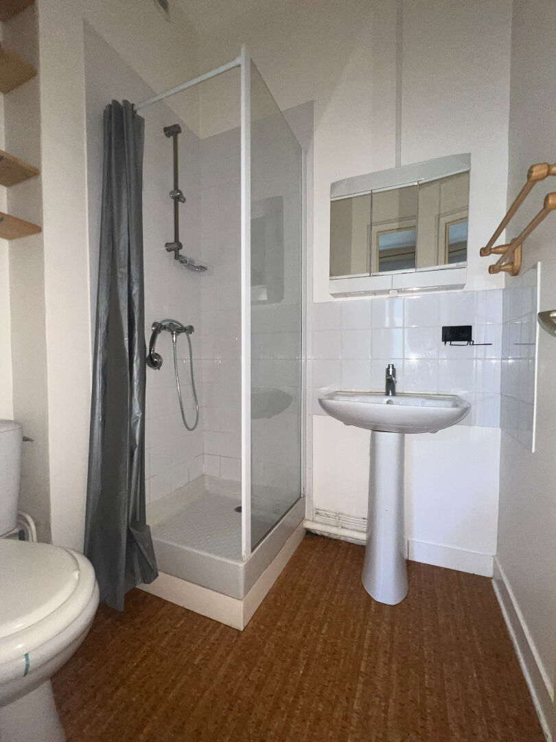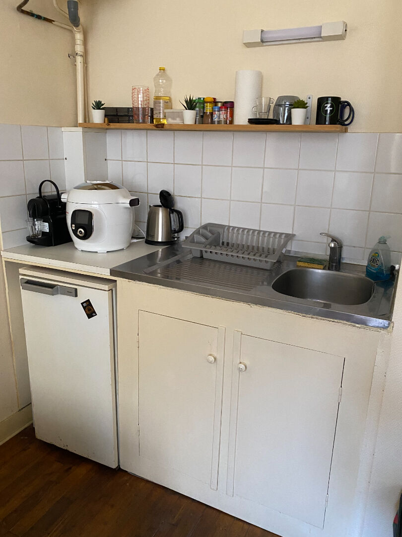 Disponible le 13 Avril A LOUER (non-meublé) Studio au RDC, donnant coté cour privative, comprenant une pièce principale avec kitchenette et une salle de douche avec WC. Cour commune et local vélo à disposition.