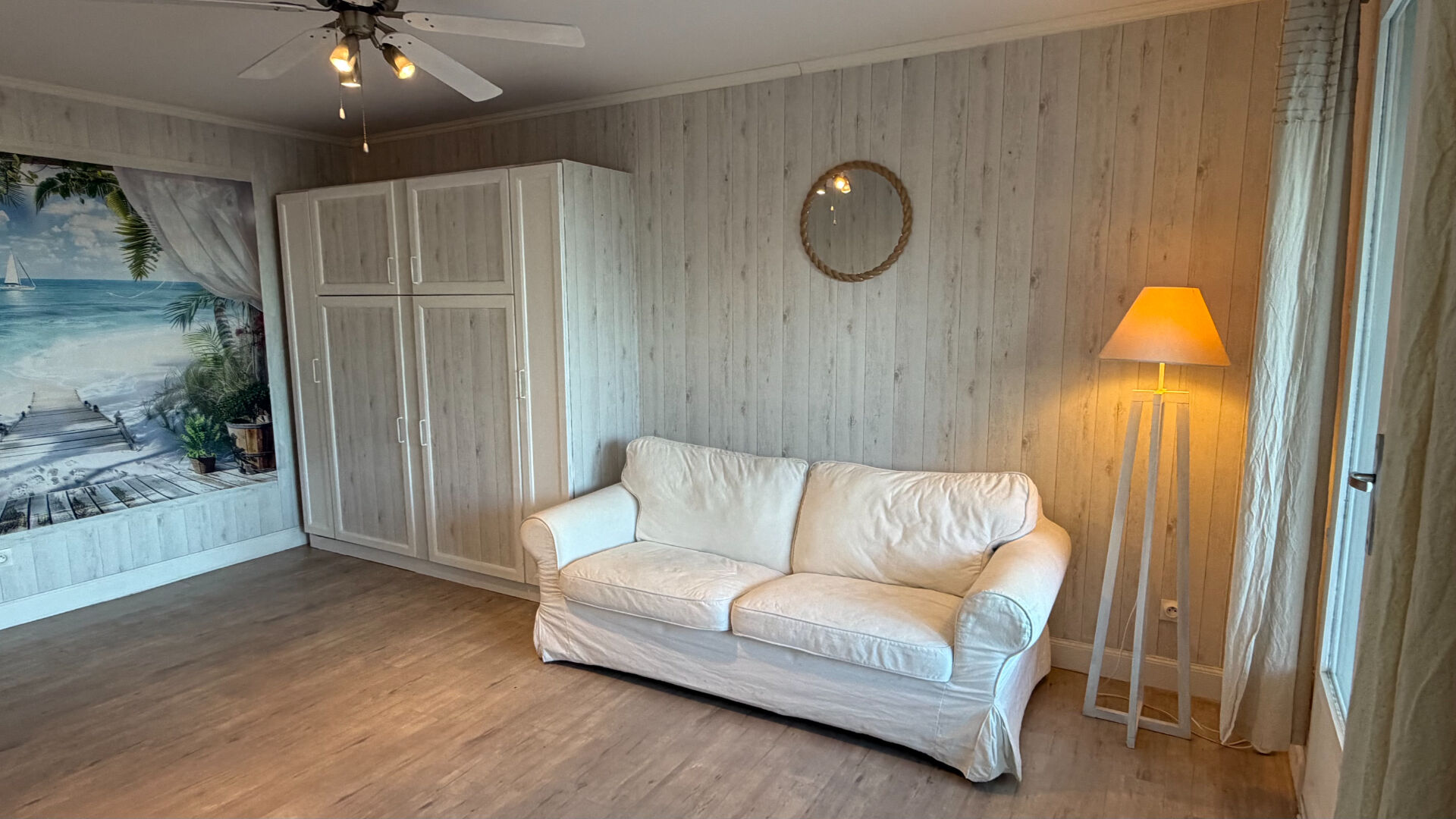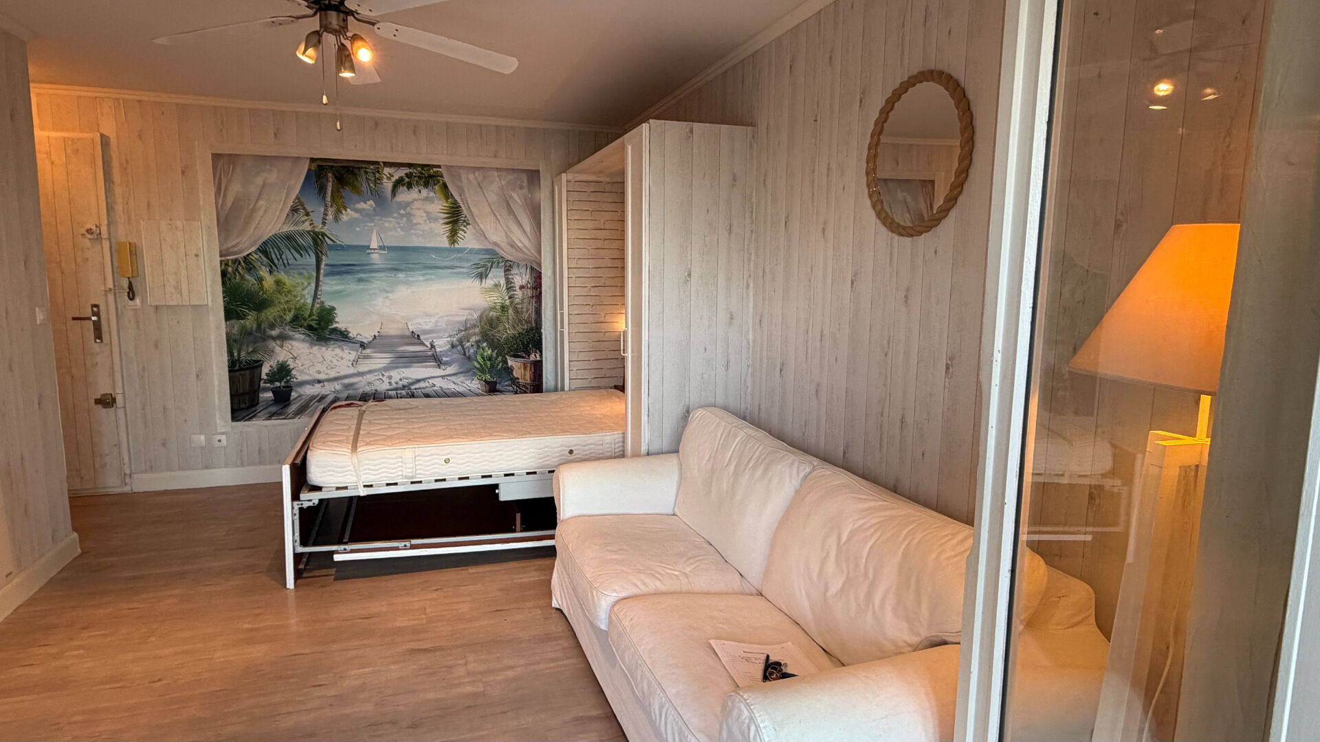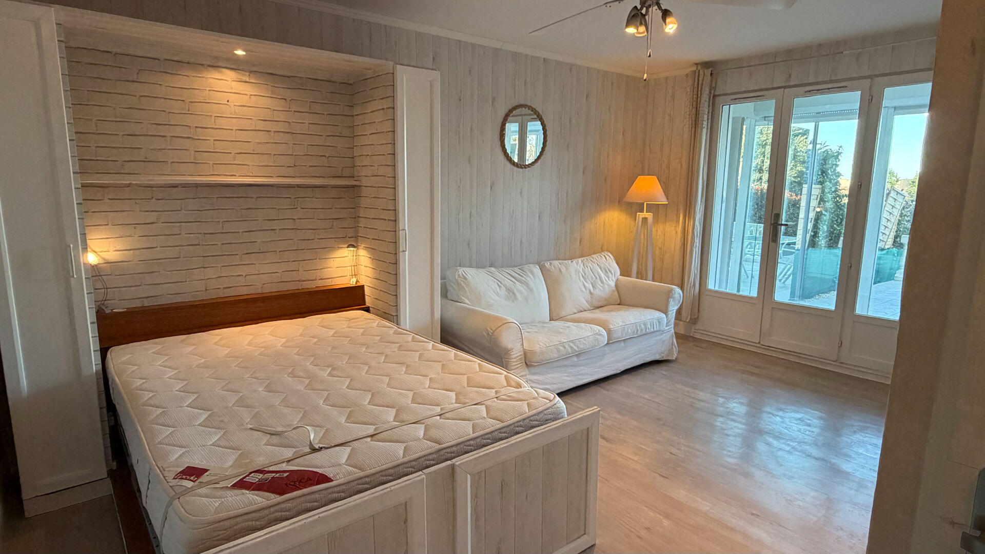 Cet appartement lumineux se compose d'une entrée, d'une pièce principale avec coin salon et coin couchage avec son lit escamotable s'ouvrant sur une véranda aménagée en salle a manger, d'une cuisine ouverte entièrement meublée et équipée, et d'une salle de bains avec WC. La véranda climatisée s'ouvre sur une belle terrasse et un jardin privatif exposés plein sud, parfaits pour profiter du soleil et des moments de détente en extérieur.