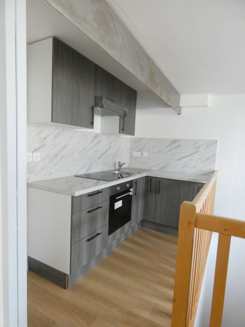 1er étage pièce de vie avec cuisine aménagée et équipée, salle d'eau avec WC