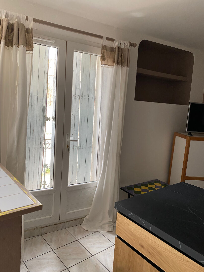 Studio meublé situé au 1er étage comprenant une pièce principale avec un coin cuisine, un salon/séjour/chambre donnant sur un petit balcon, une salle d'eau et un WC séparé.