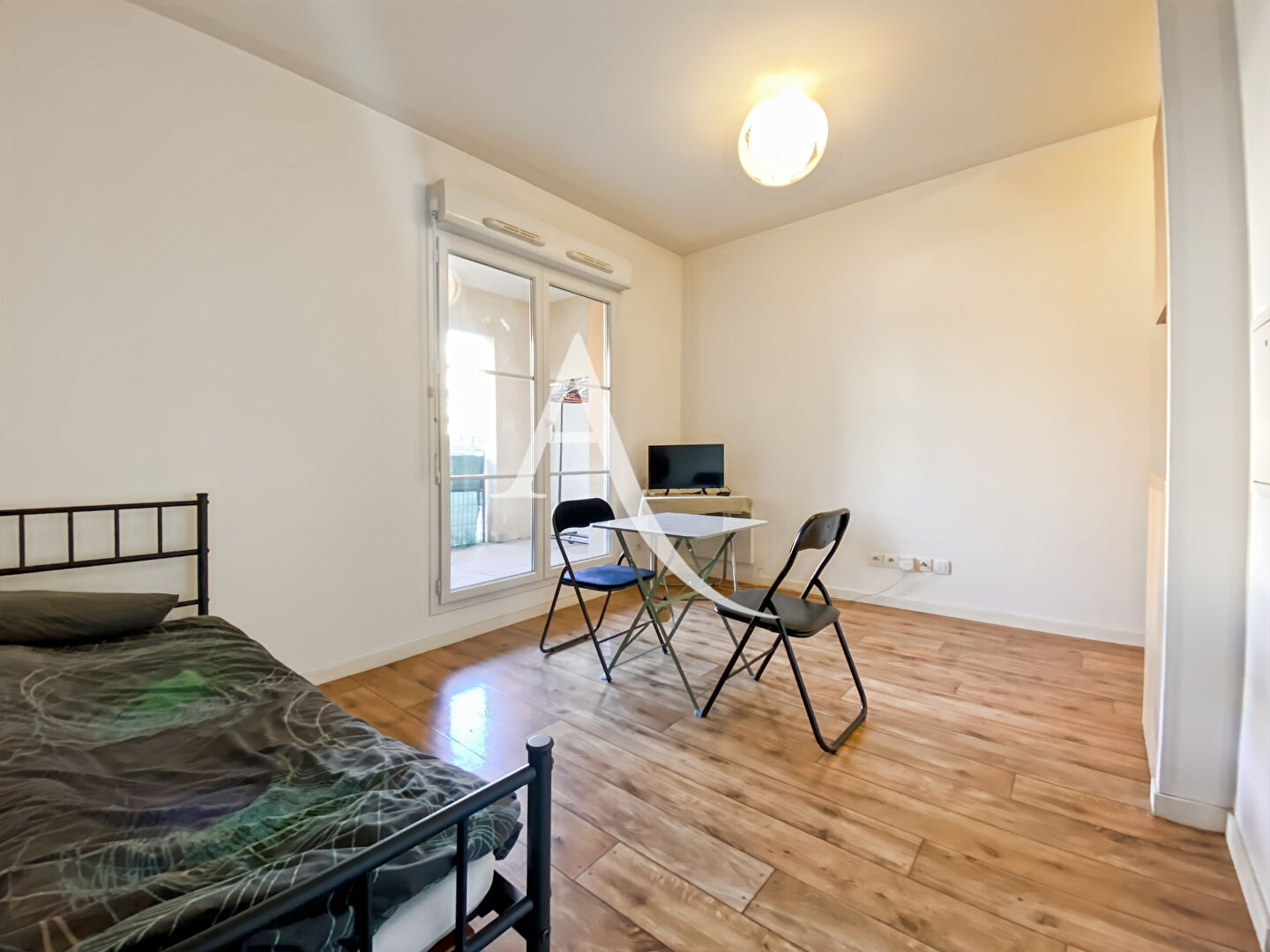 Proche transports, dans petite copropriété, Studio avec parking privé en sous-sol, entrée, pièce principale avec kitchenette équipée ( plaque, hotte, micro-onde, réfrigérateur), loggia/balcon de 7 m², salle de douche avec w.c, machine à laver à disposition. Idéal étudiant. Libre de suite.