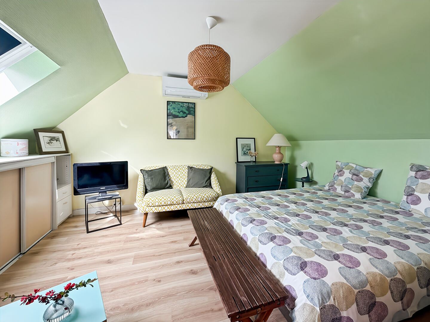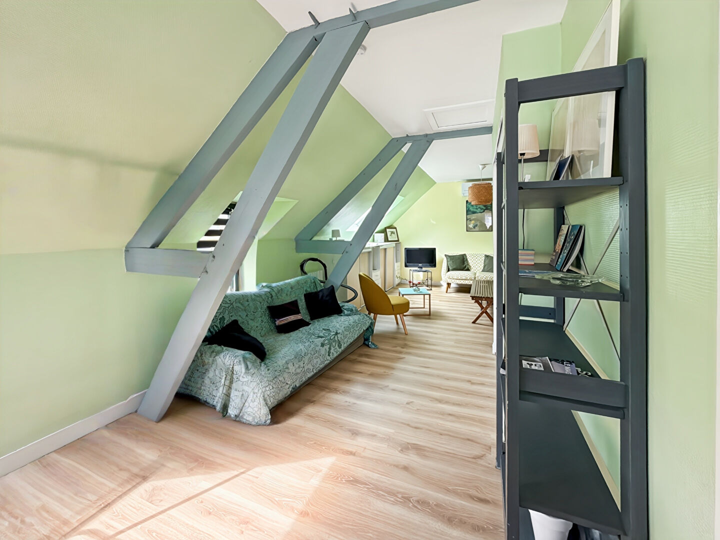 Situé au sein d'une maison, au premier étage, ce grand studio plein de charme saura vous séduire par ses beaux volumes et son agencement optimisé.